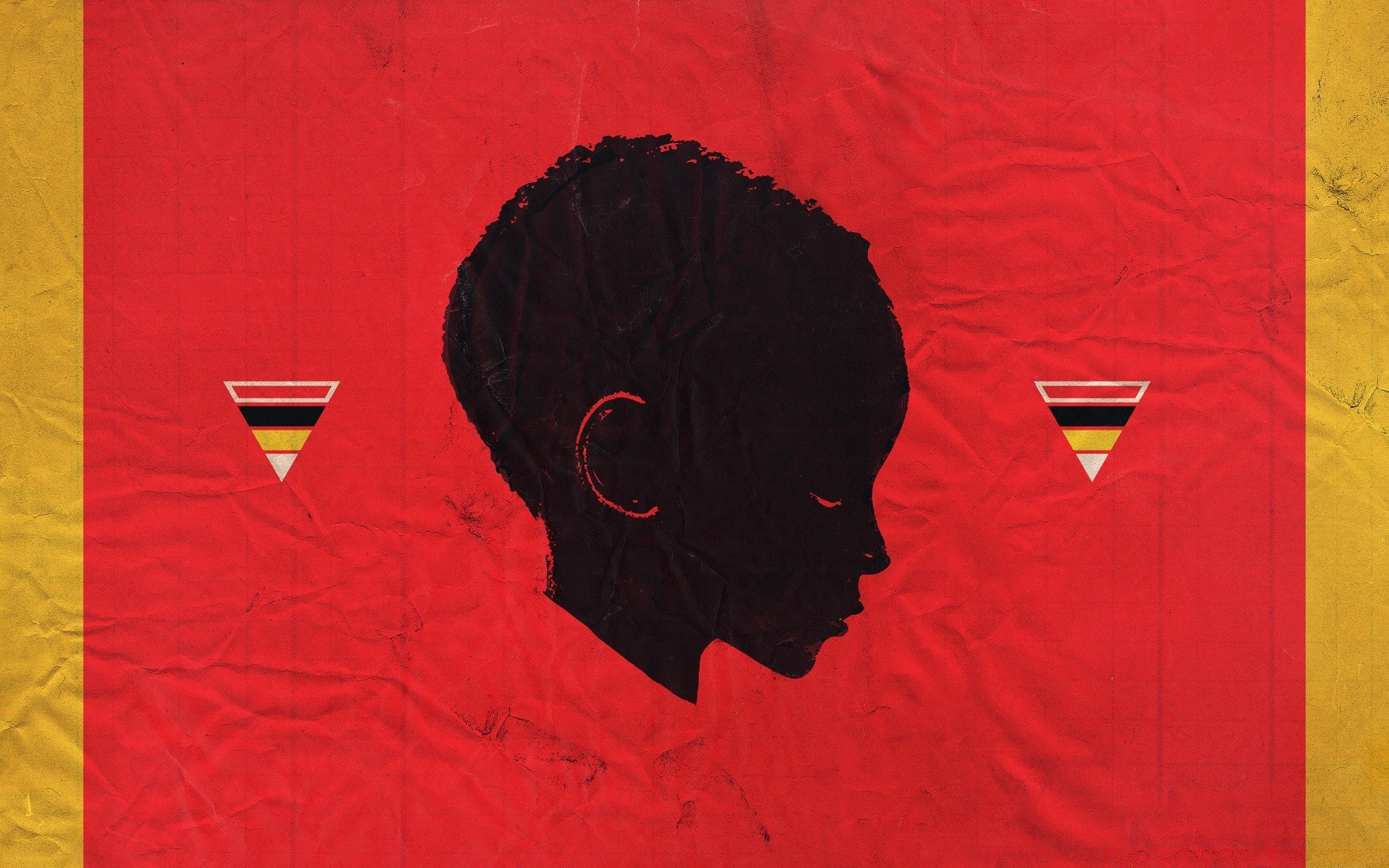 Obraz czarnej sylwetki na czerwonym tle w stylu grunge