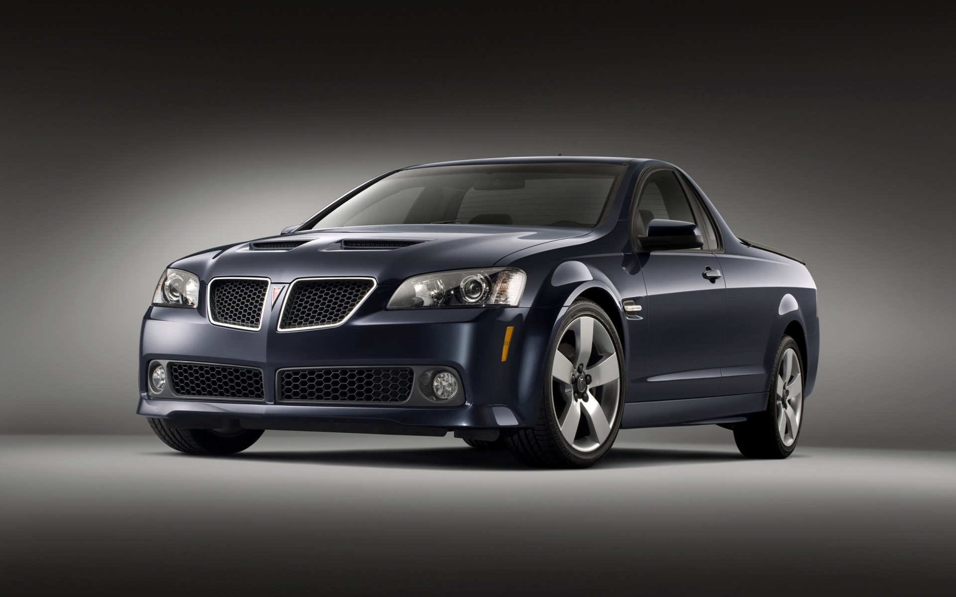 Granatowy Pontiac na szaro czarnym tle