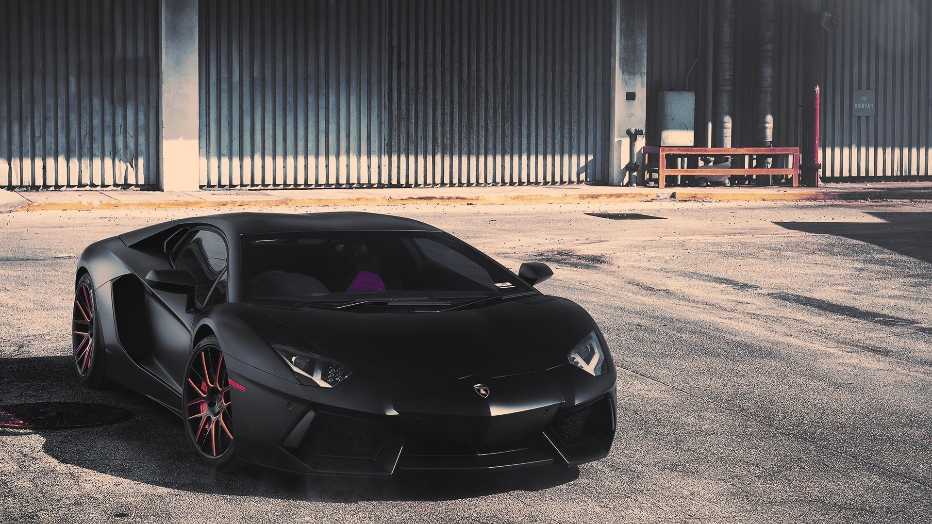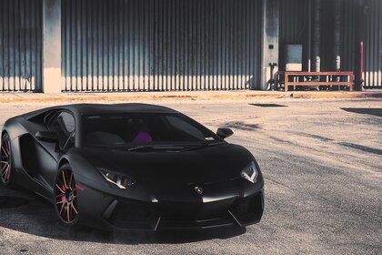 Czarny samochód sportowy zaparkowany przy garażu