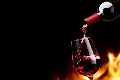 Czerwone wino ogień płomień butelka kieliszek