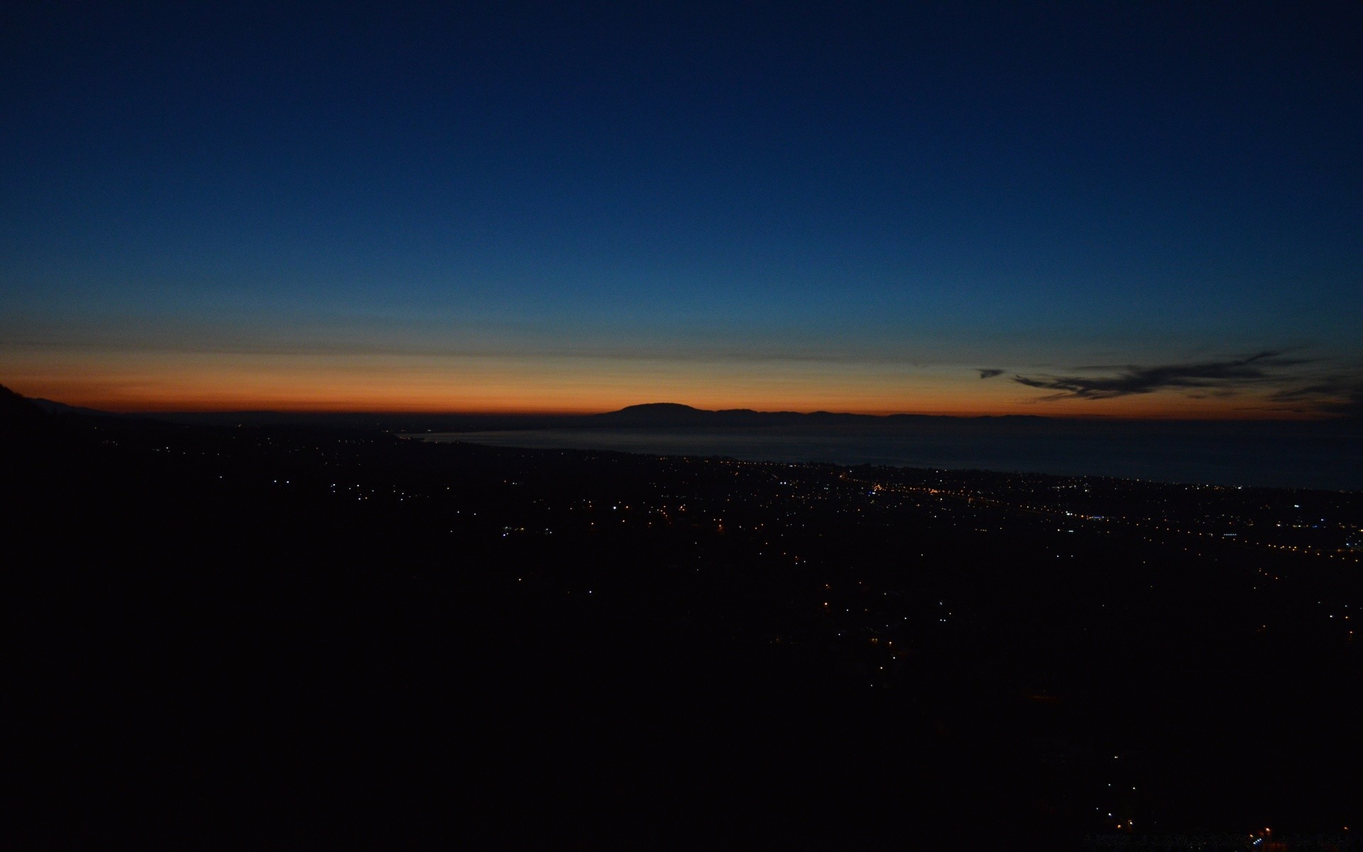 Brązowe niebo na horyzoncie po zachodzie słońca