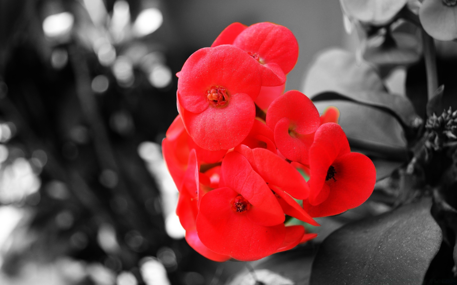 Rozmyte tło. Makrofotografia. Kwiat czerwony