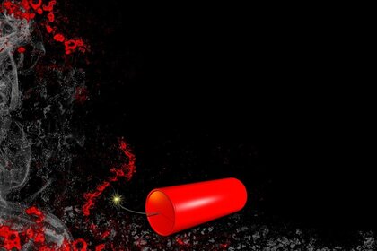 Sylwetka Batmana na ciemnym tle. Czerwony znak