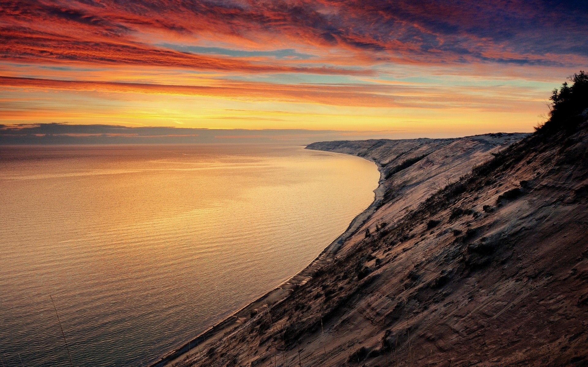 Zakrzywiony Brzeg i kolorowe wieczorne niebo