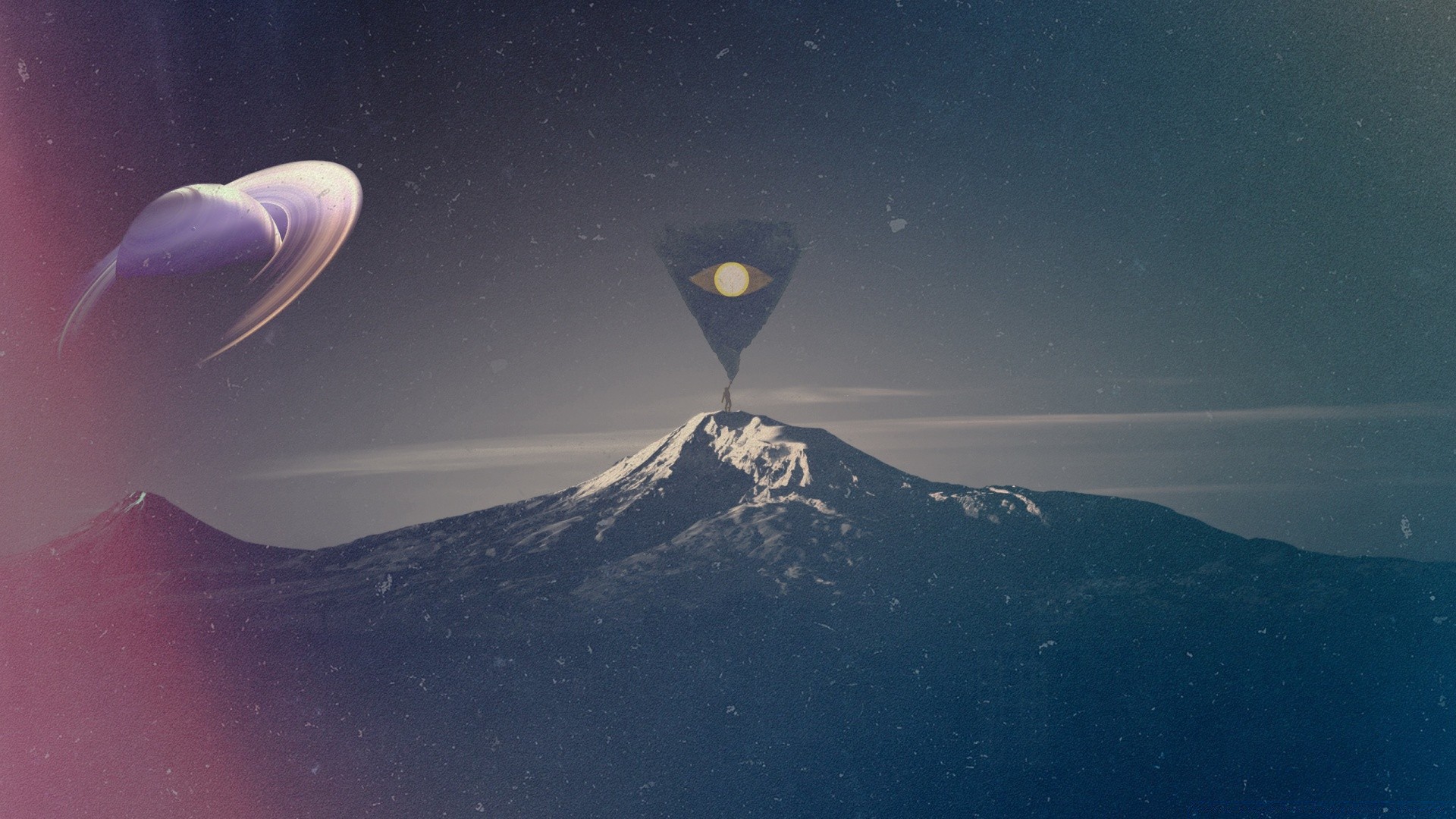 Sylwetka człowieka na górze świecącego ciemnym promieniem w niebo