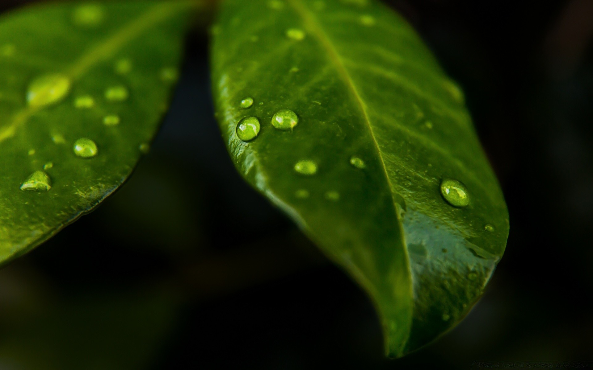 Makrofotografia padającego deszczu na liść