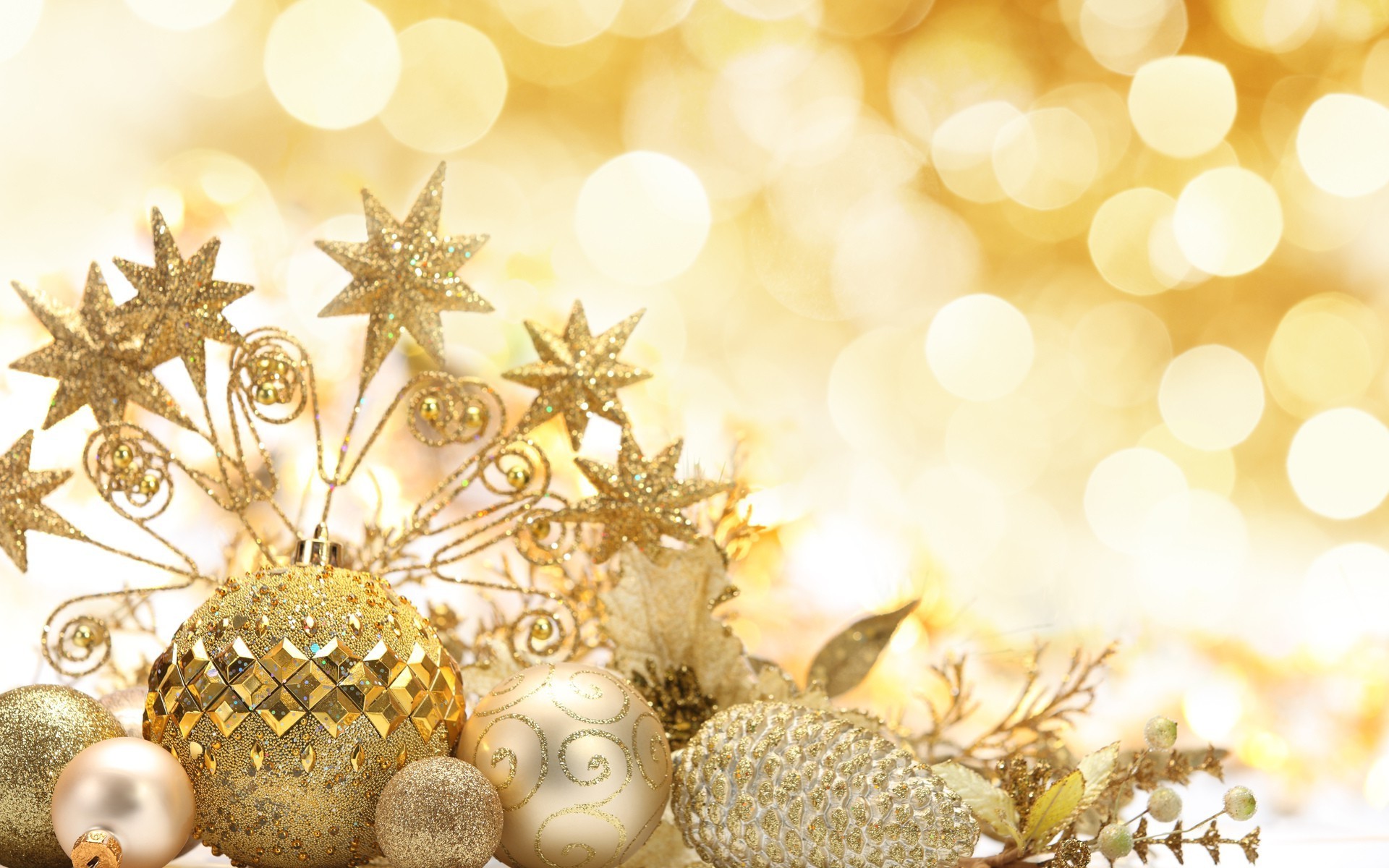 Pudełko w kolorze czerwonym z białą kokardką wśród świątecznych zabawek i świerkowych gałęzi