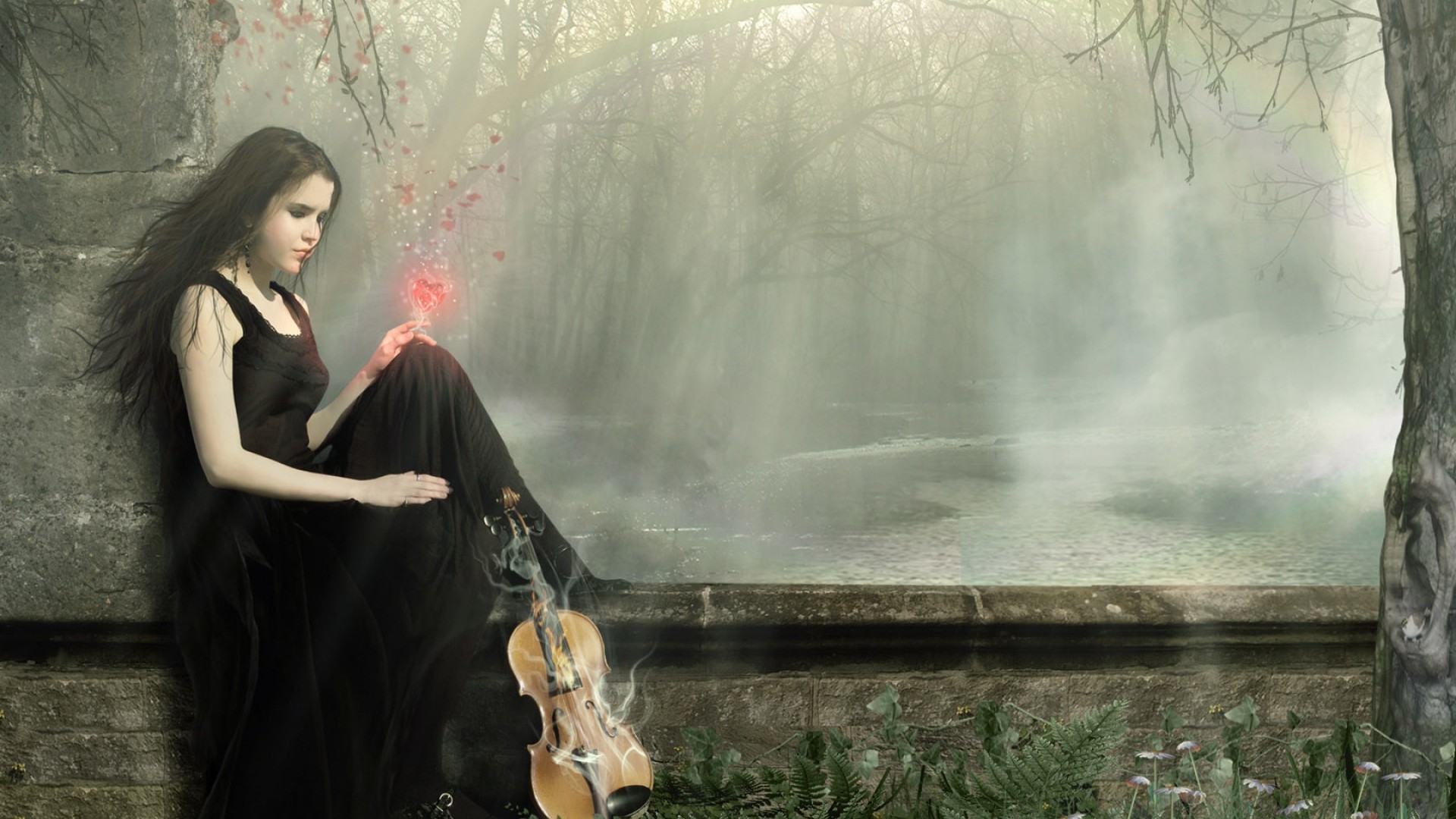 Dziewczyna skrzypaczka grała sztukę na łonie natury
