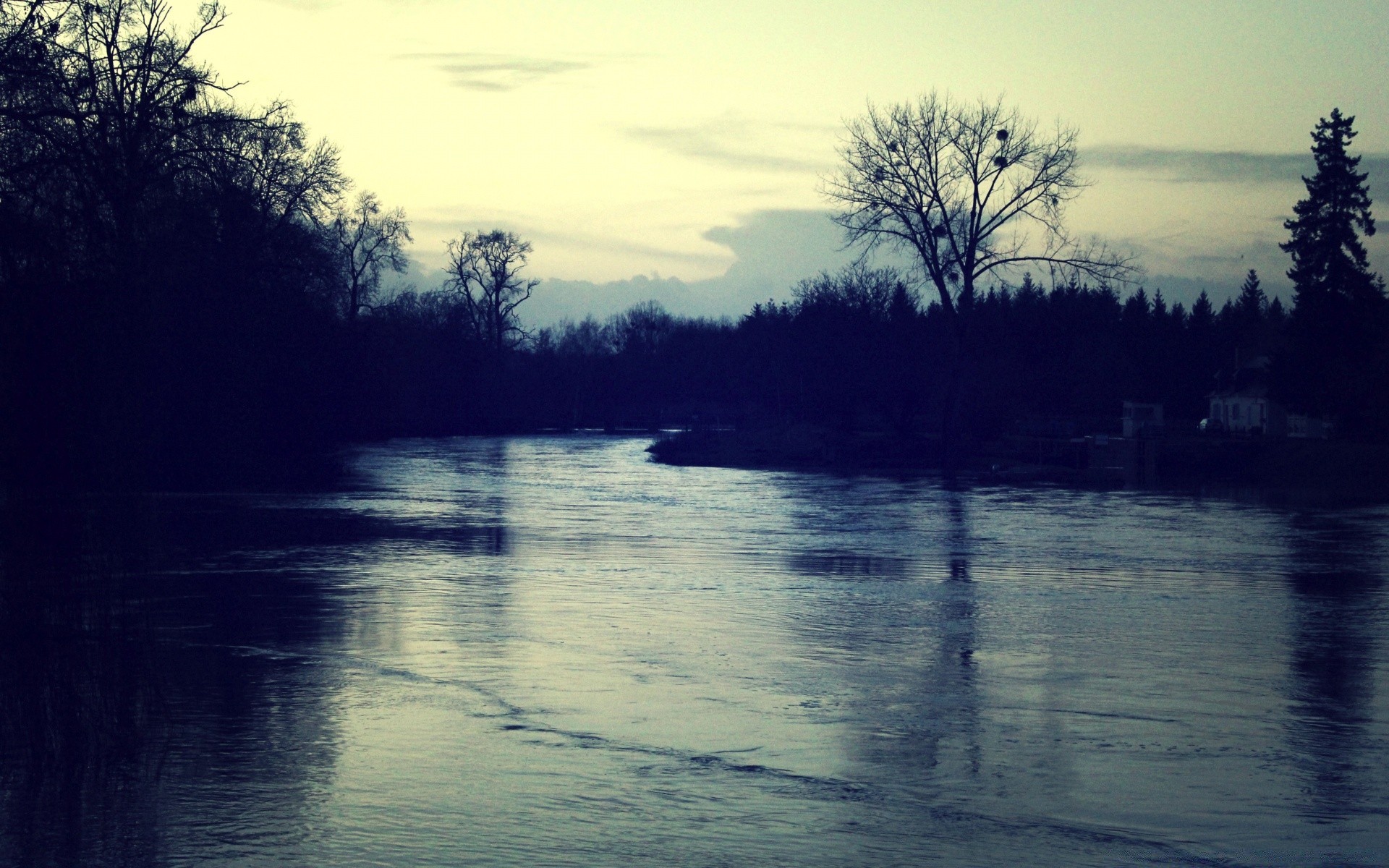 Ciemna rzeka wśród ciemnego lasu