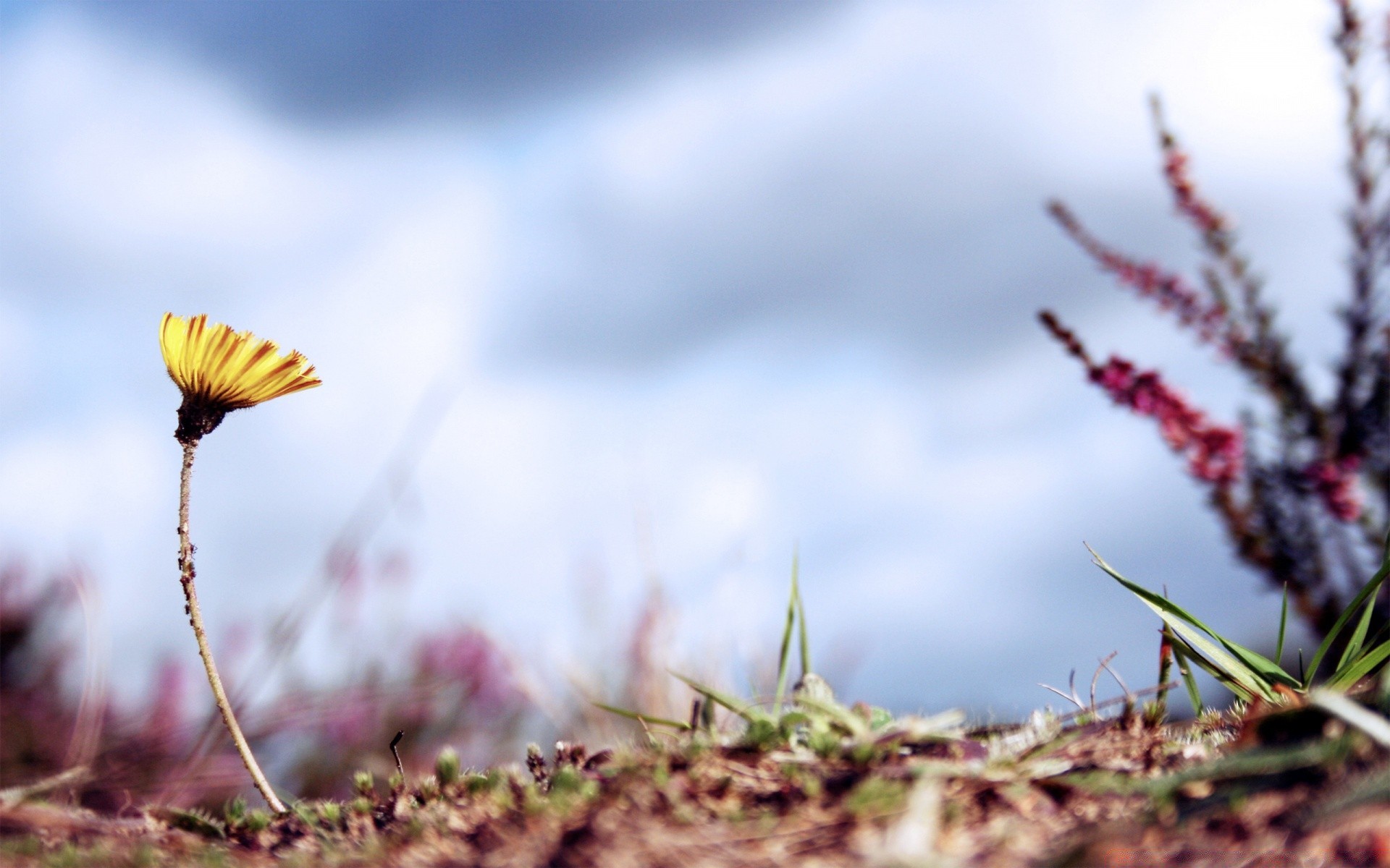 Rozmyte zdjęcie trawy i kwiatów