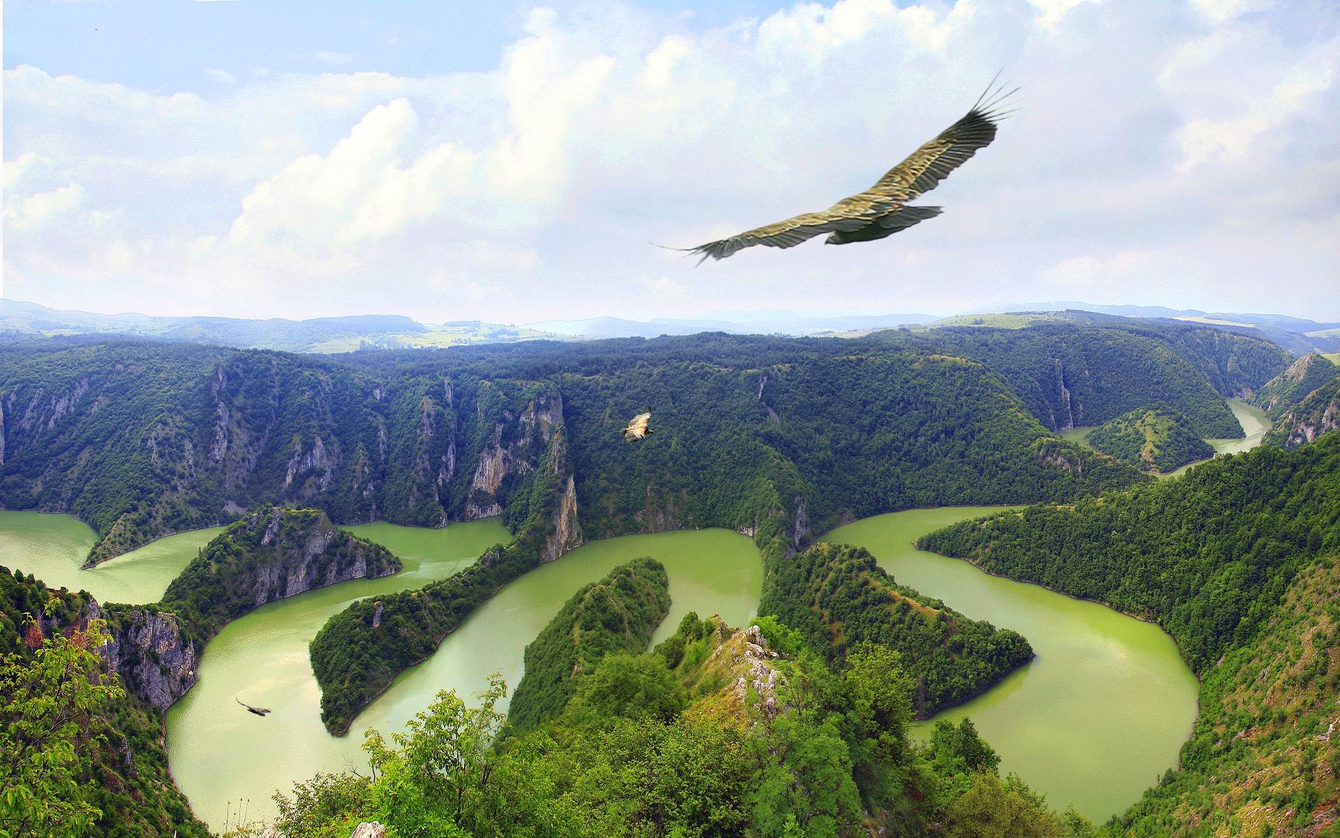 Skały, skały, drzewa, potok niesamowity krajobraz