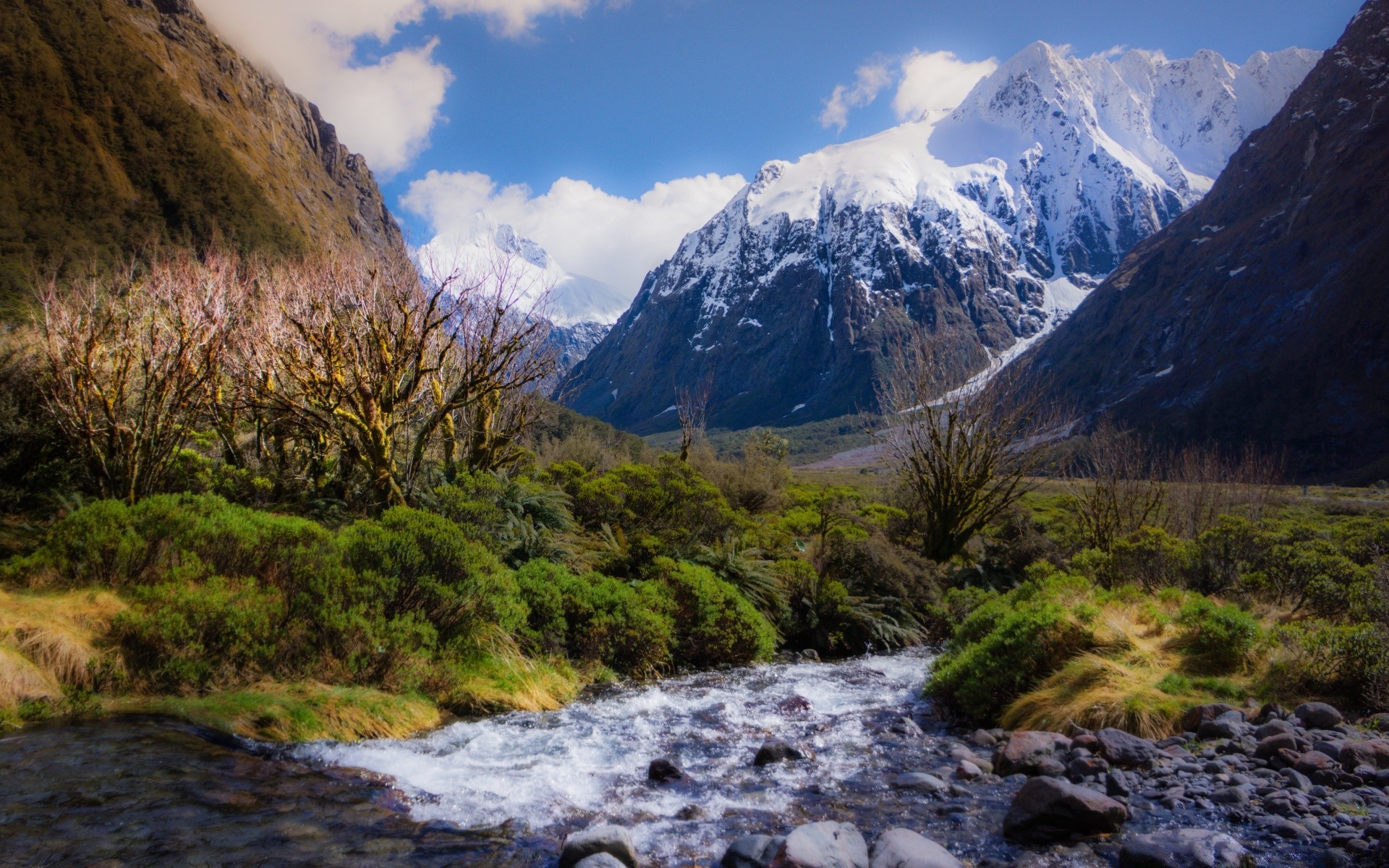 Krystalicznie czysta rzeka płynąca wzdłuż góry