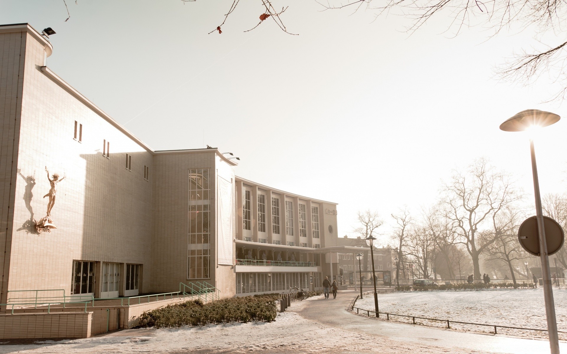 Azjatycki wielopiętrowy dom na tle błękitnego nieba