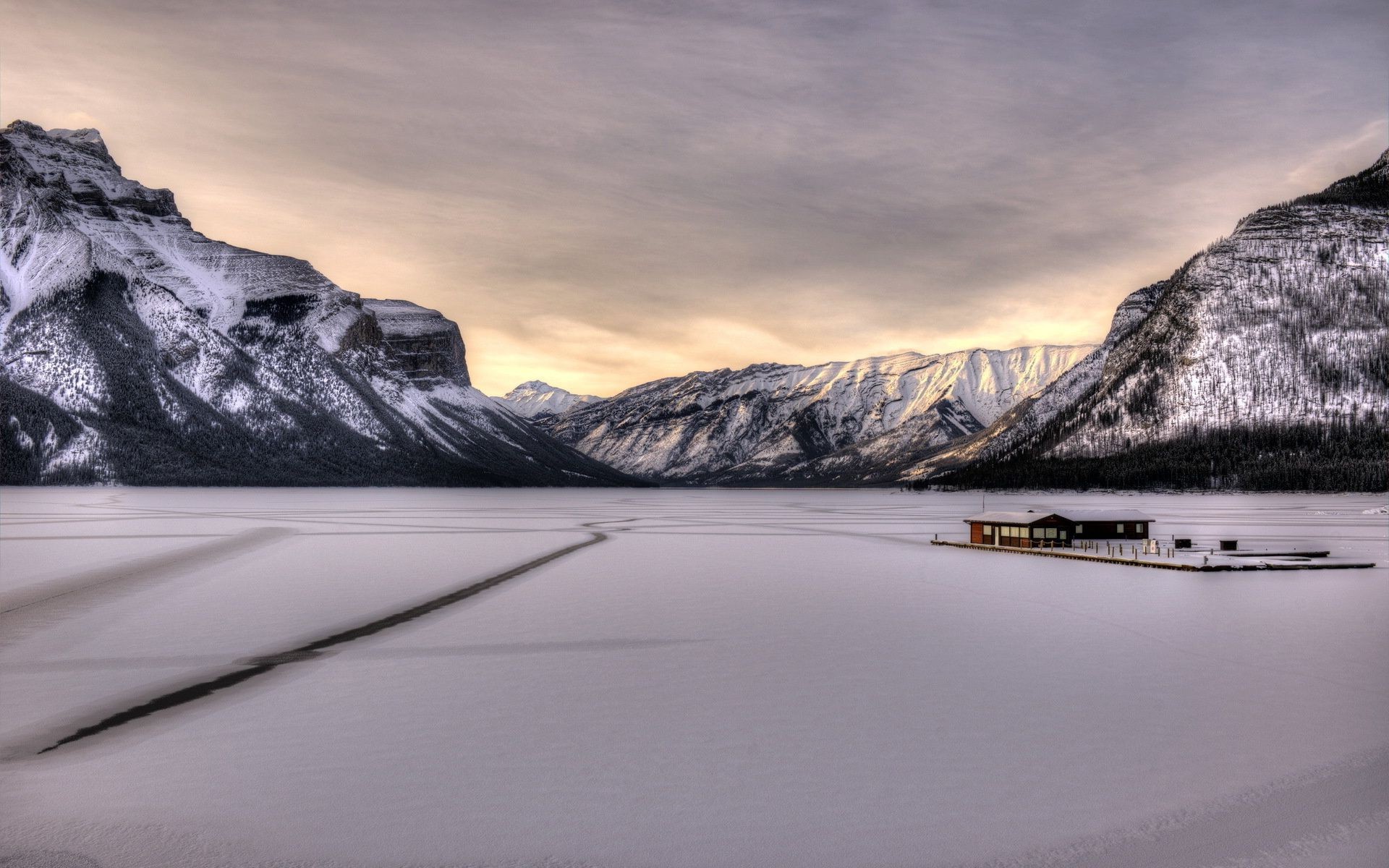 Samotny domek w ośnieżonych górach