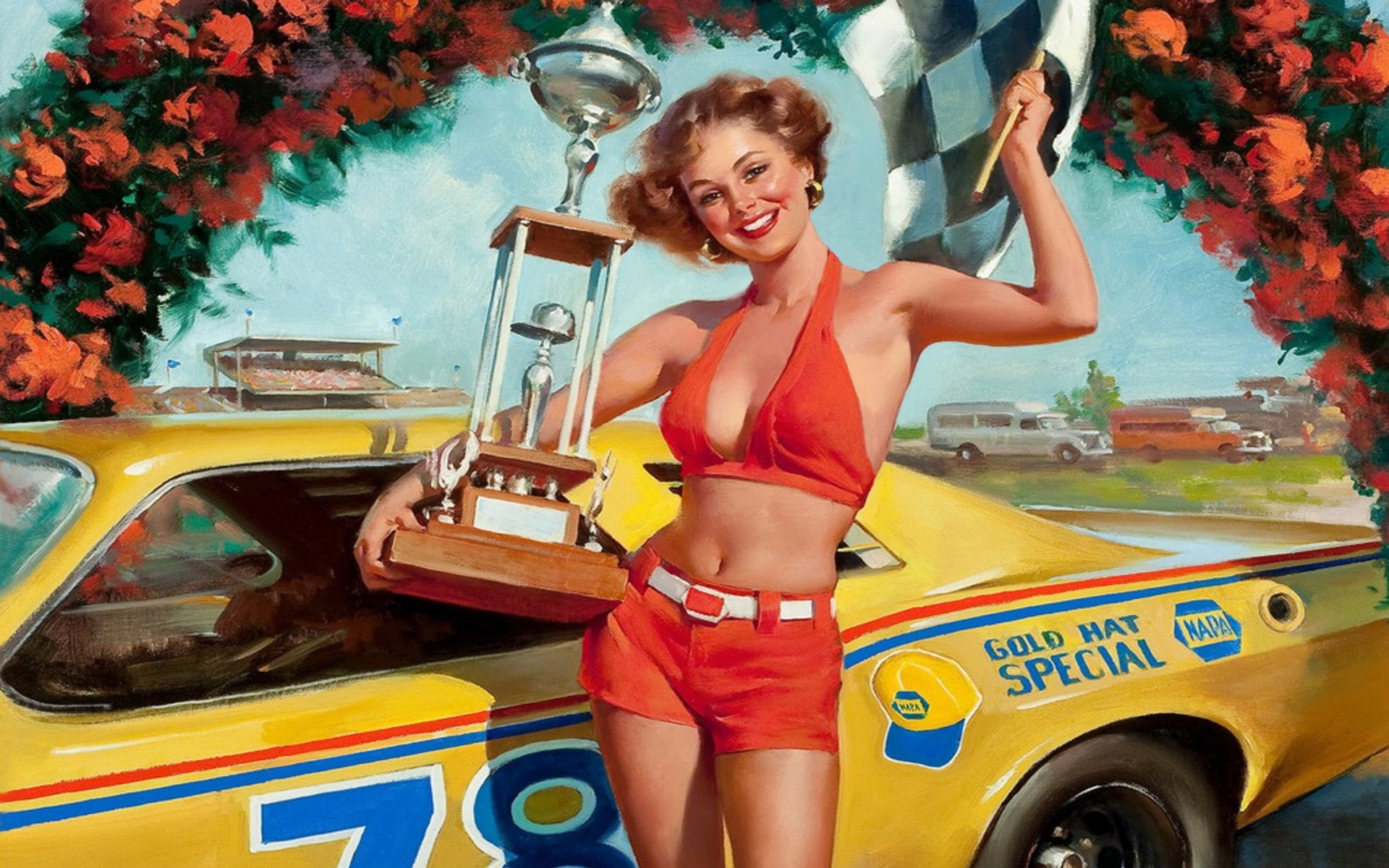 Fotografia Retro Z Dziewczyna i samochodami