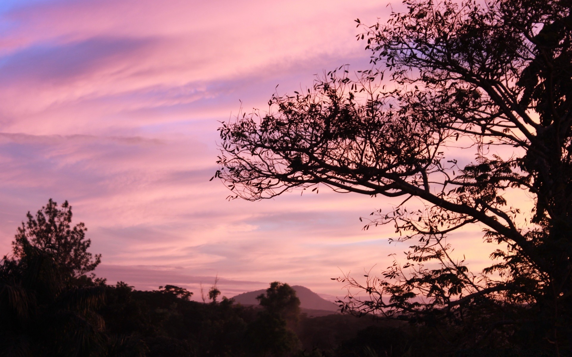 Wulkan erupcja drzewa popiół Czerwone niebo