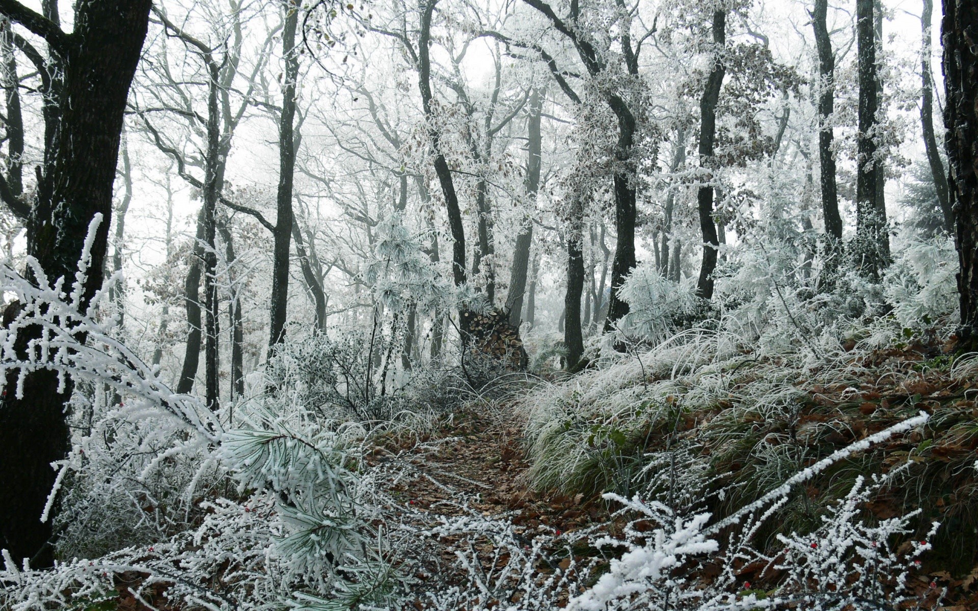 Drzewa pokryte mroźnym szronem