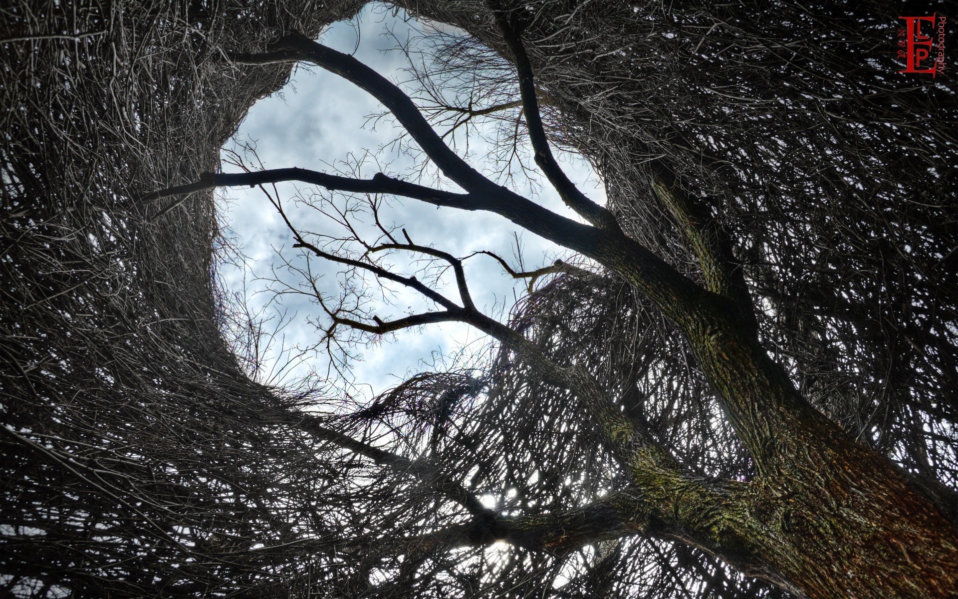 Krajobraz nieba przez gałęzie drzewa