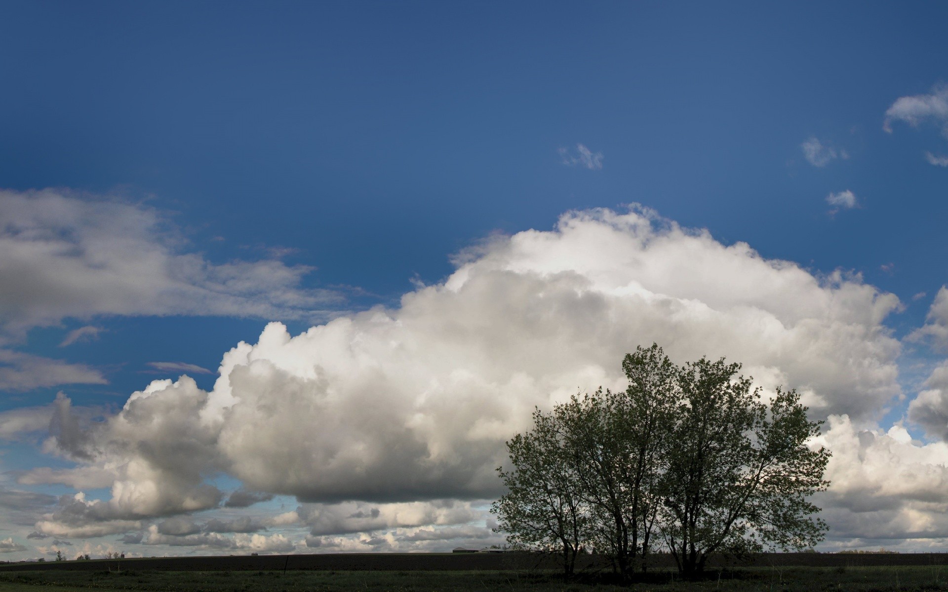 Łyse drzewo na niebieskim tle stoi pod chmurą