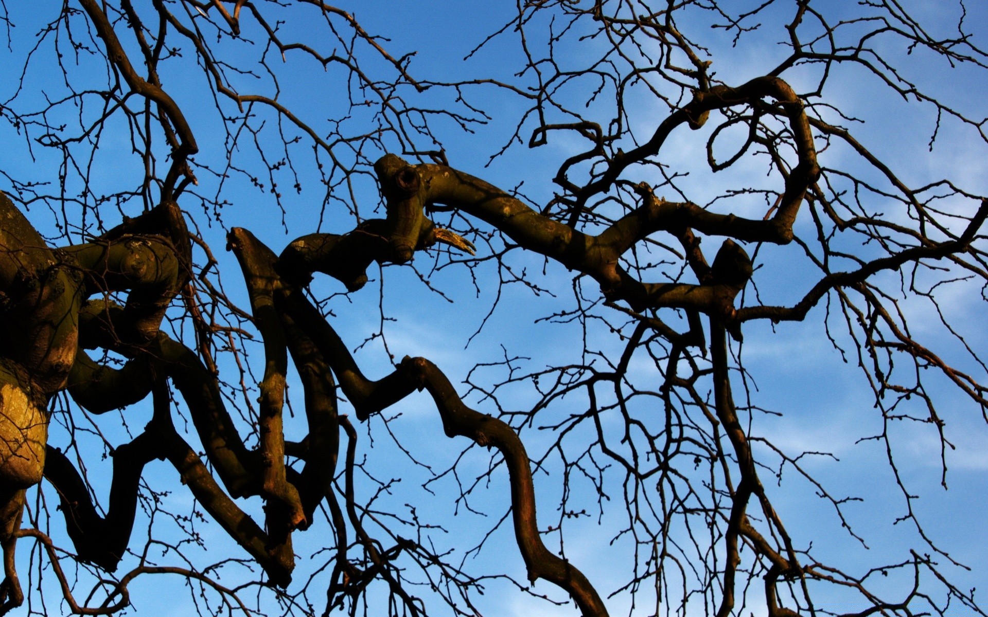 Rozłożyste drzewo na tle słońca zachodzącego za horyzontem