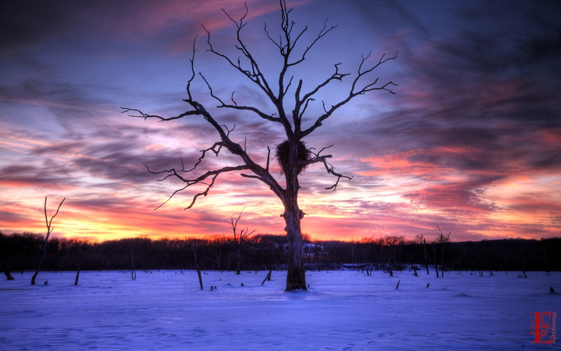 Samotne drzewo w pobliżu jeziora oświetlone słońcem
