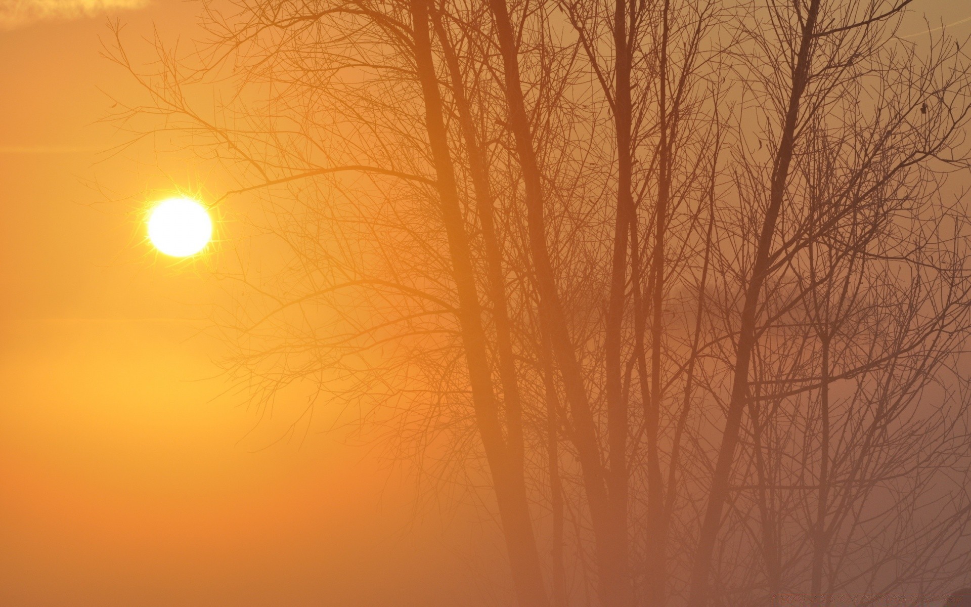 Drzewo bez liści i tarcza Słońca