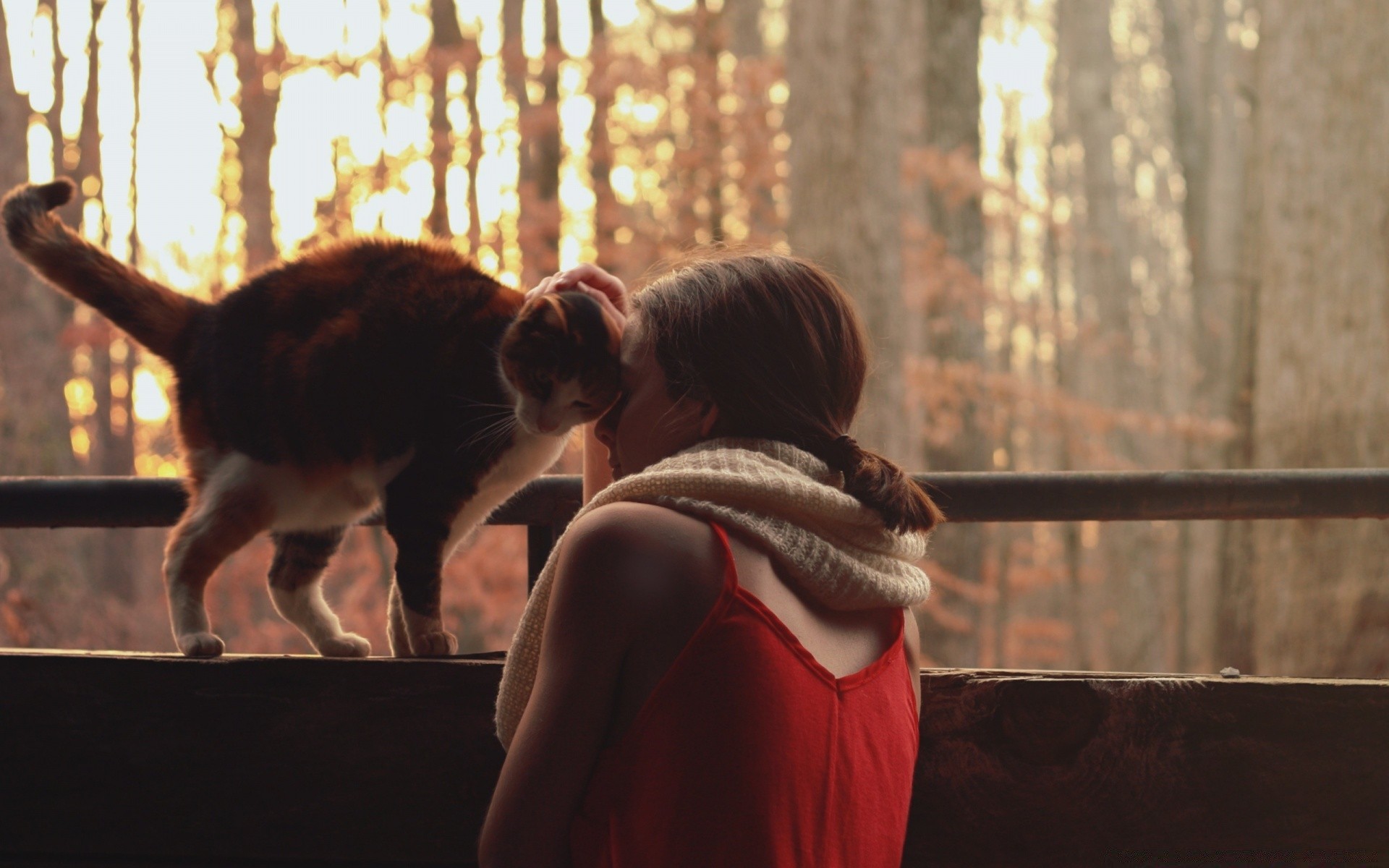 Kot mruczy z dziewczyną