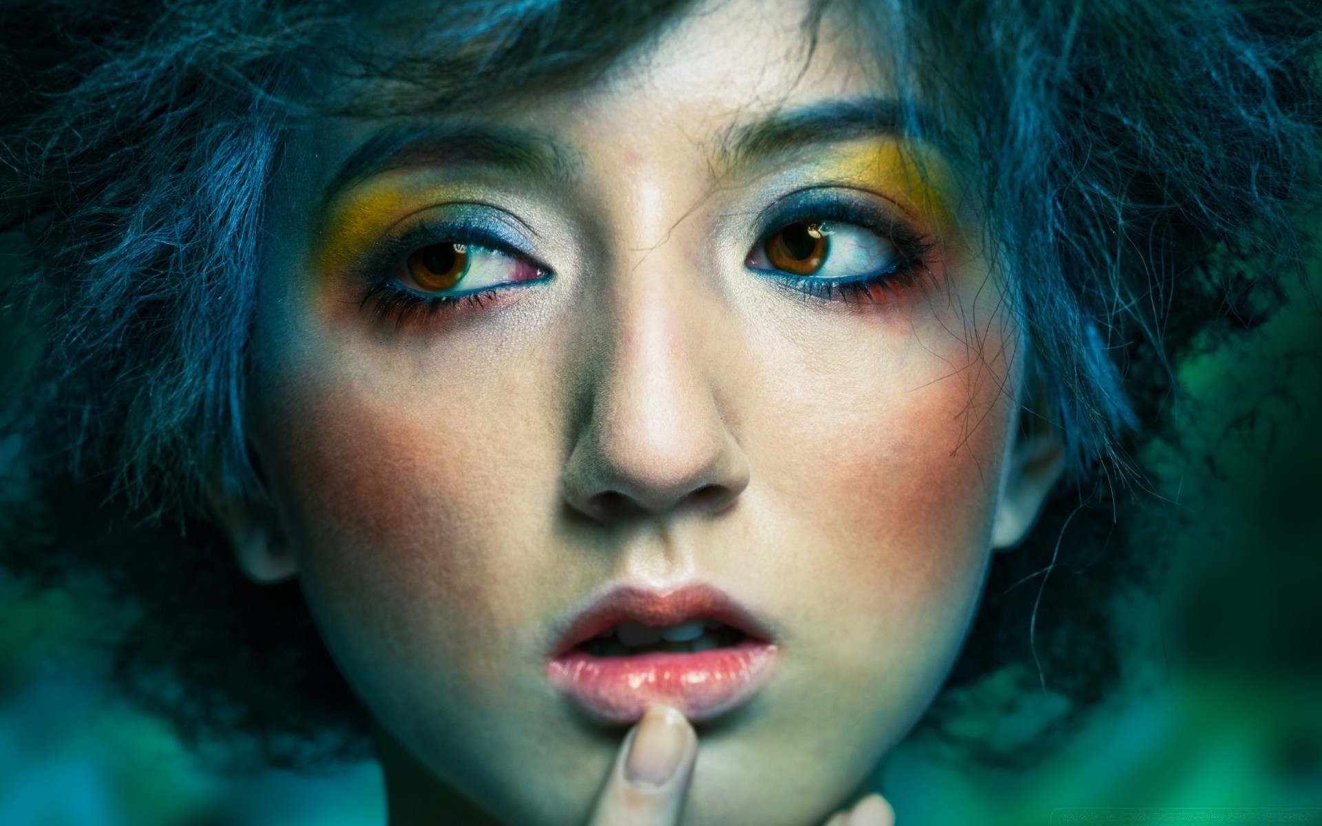 Portret dziewczyny z niebieskimi włosami