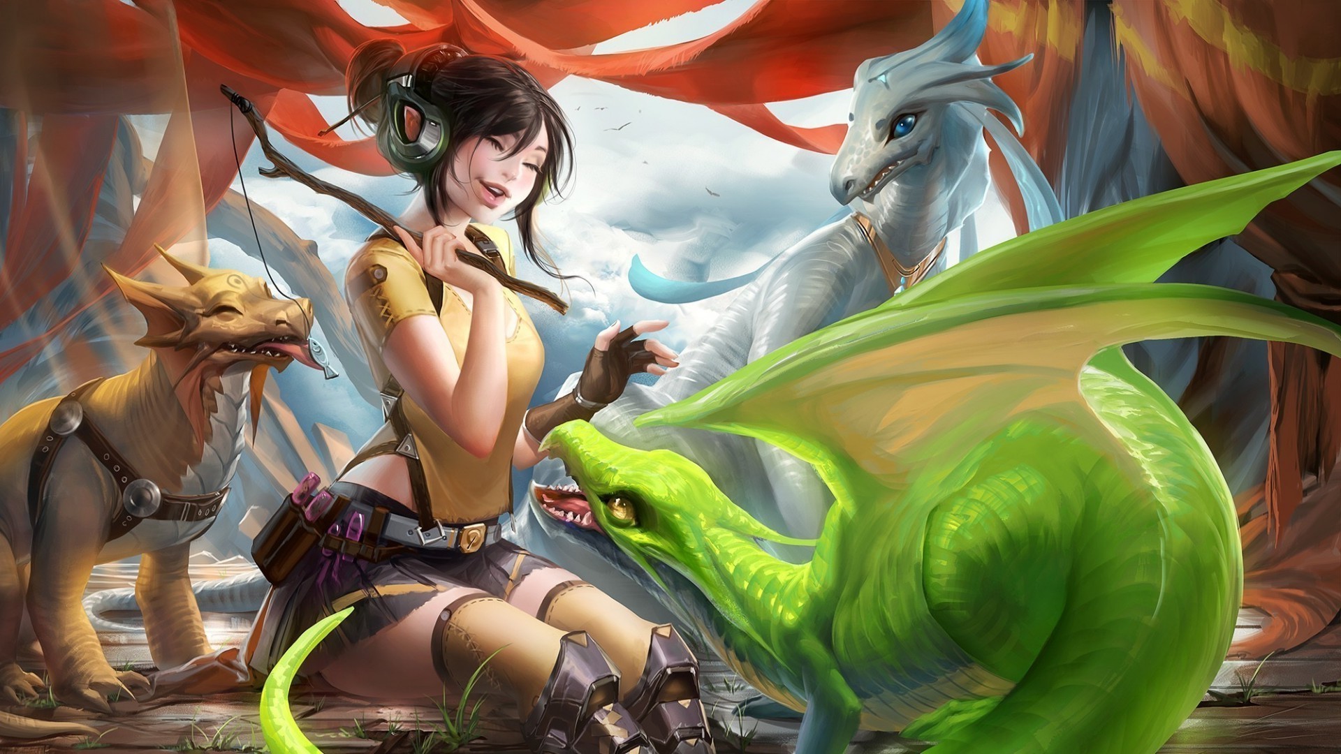Rysunek dziewczyny wojownika z dwoma mieczami