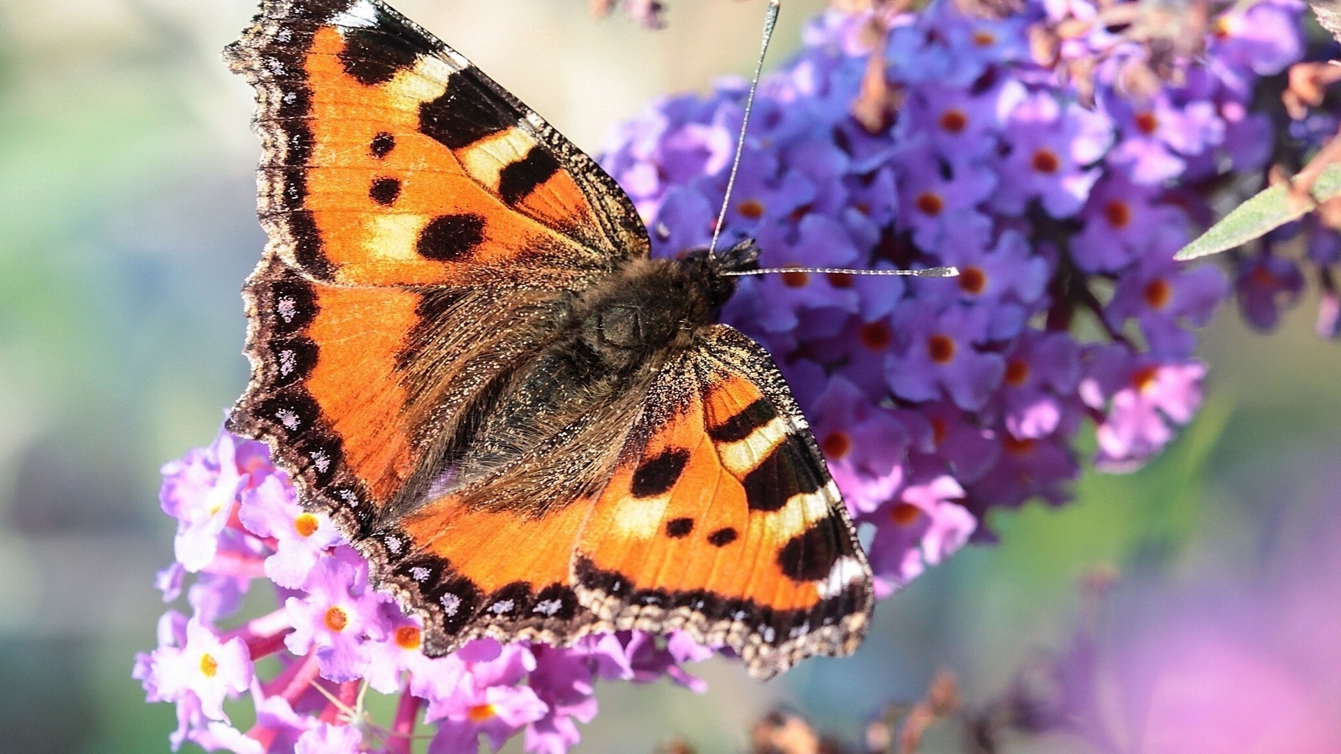Piękny motyl na liliowych kwiatach pędzla