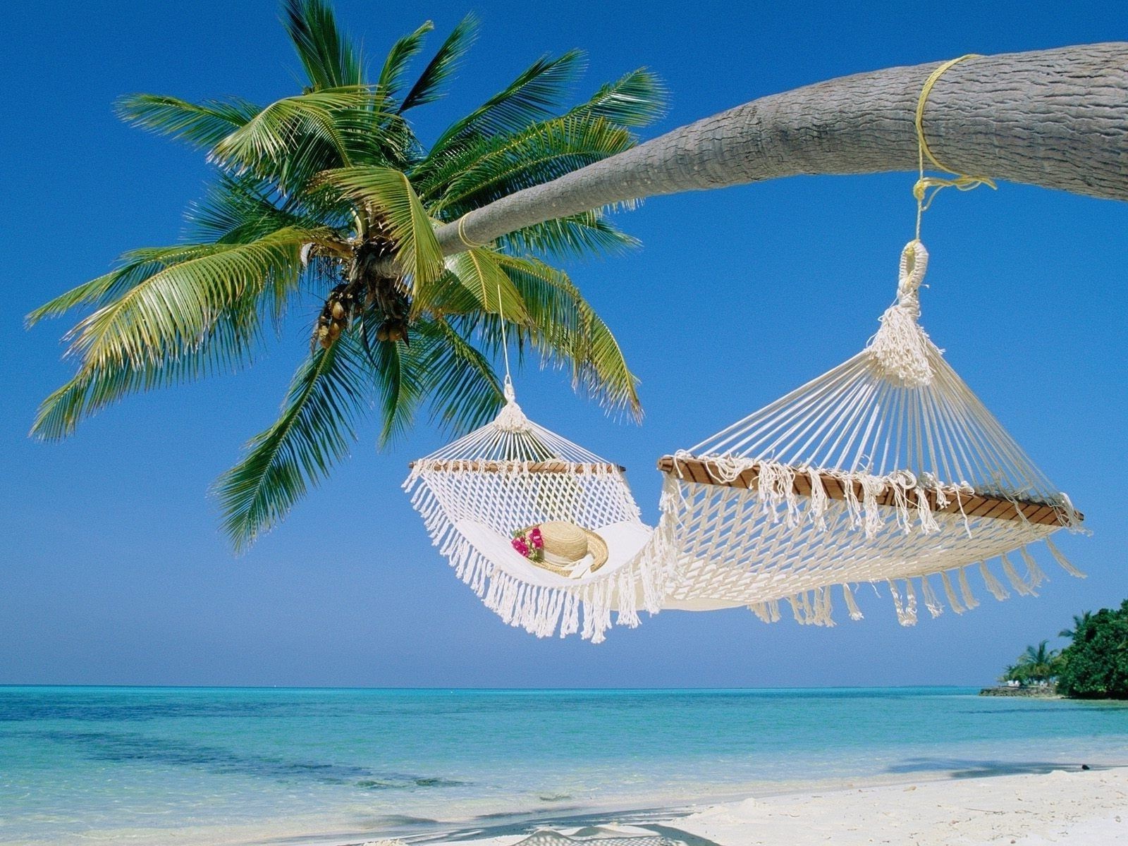 Hamak na egzotycznej palmie nad piaskiem