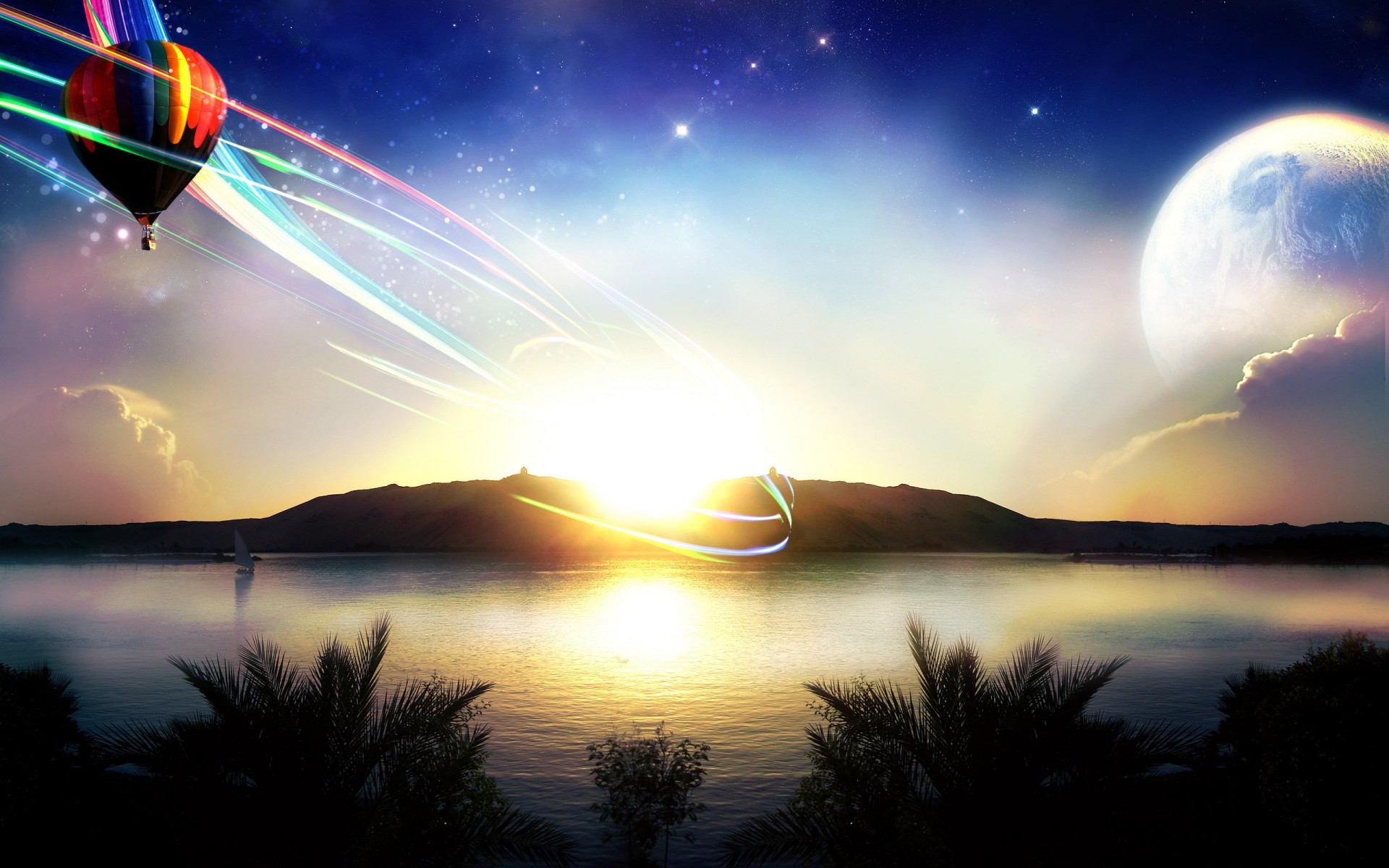 Gwiaździste niebo z magicznymi chmurami