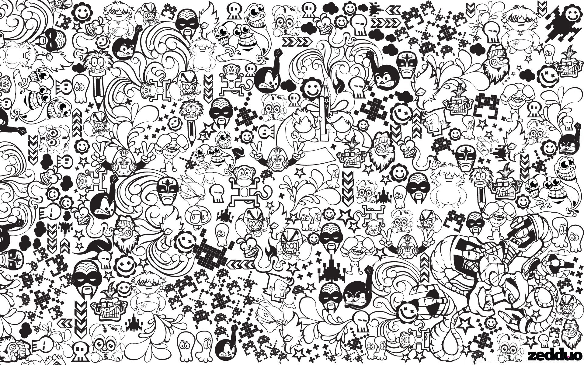 Czarno - białe wzory z bohaterami komiksów