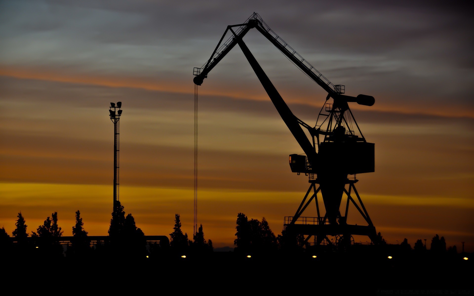 Siła żurawia na letnim zachodzie słońca