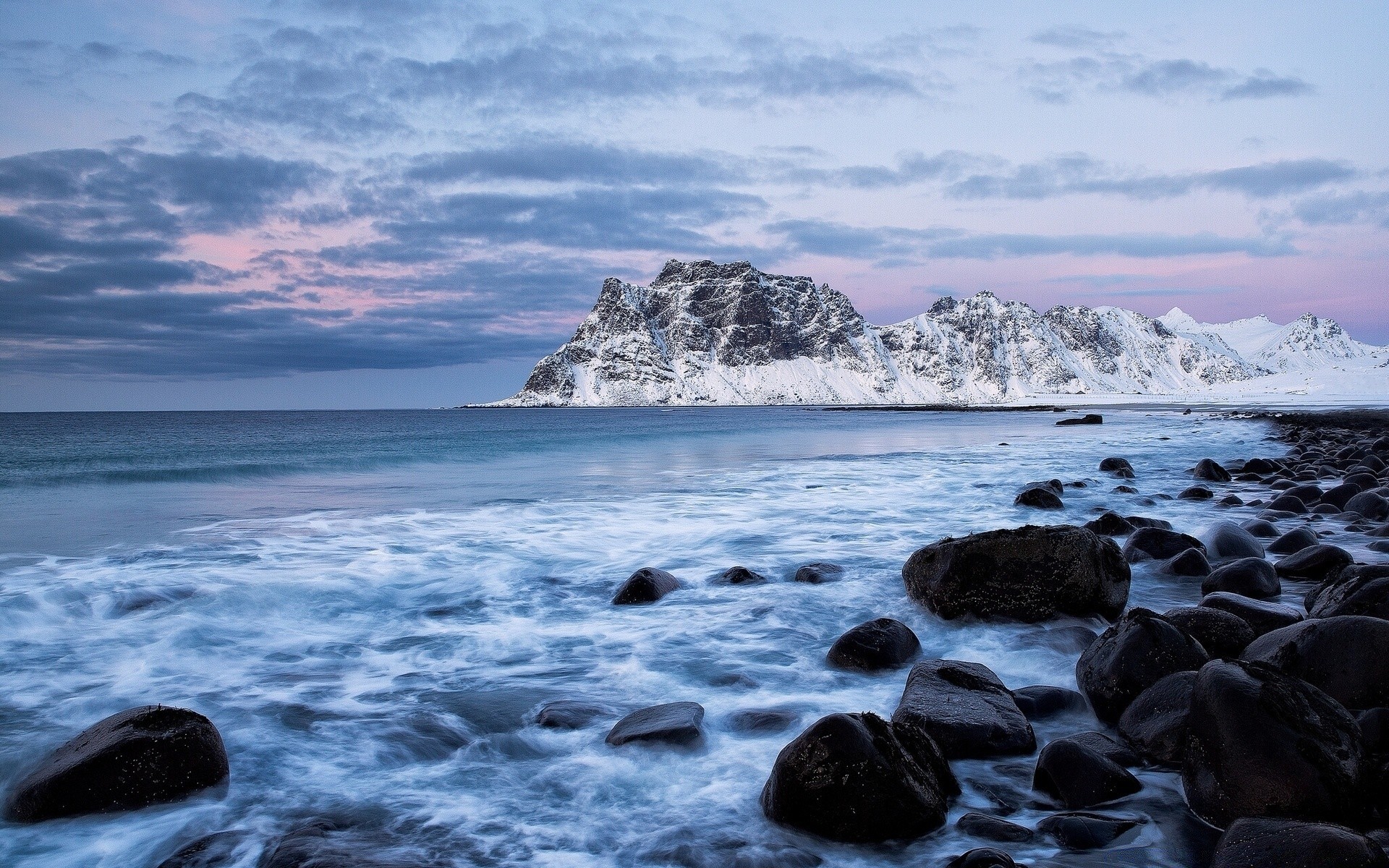 Góry i Jezioro oświetlone promieniami słońca, które wystają z chmur