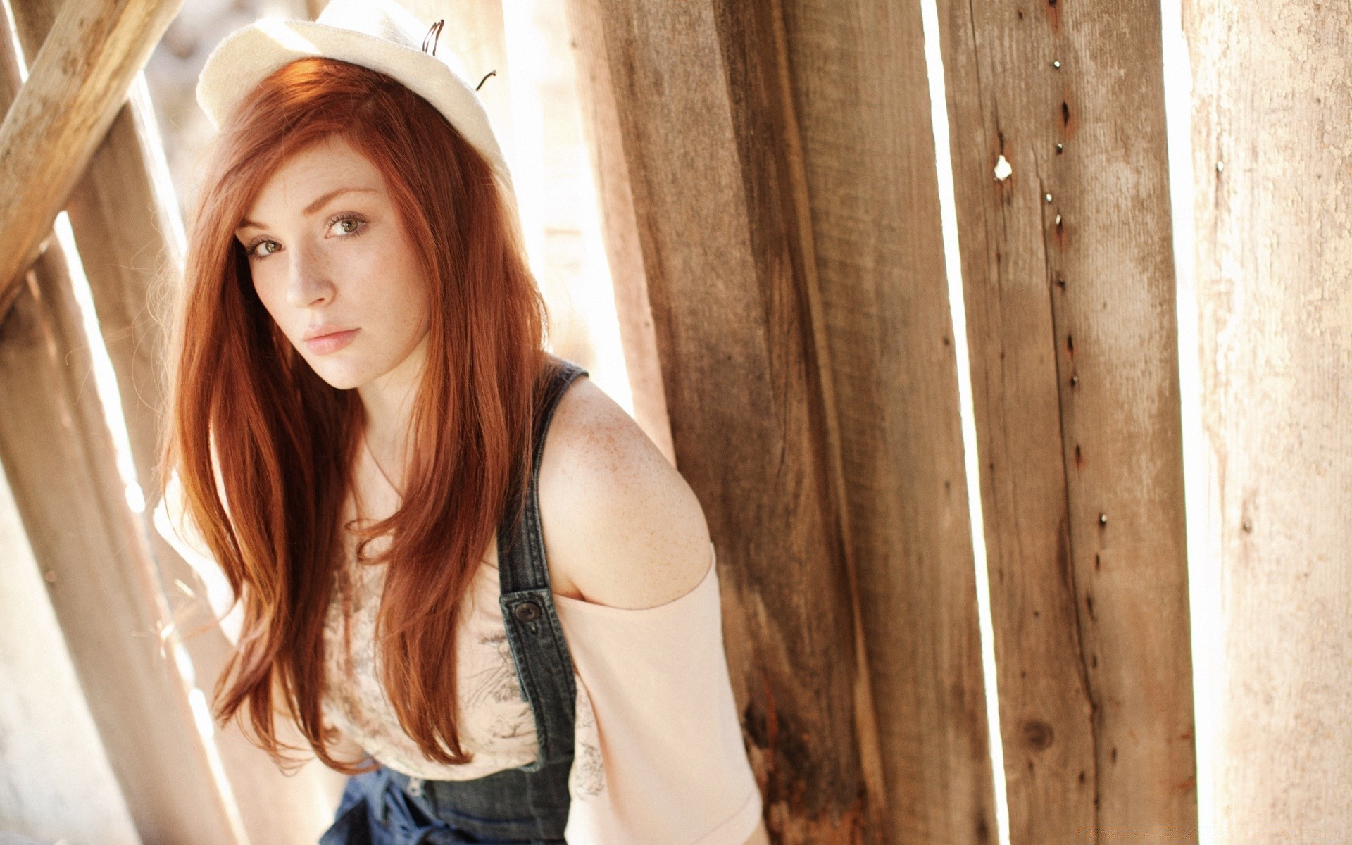 Dziewczyna z rudymi włosami w blond letnim kapeluszu