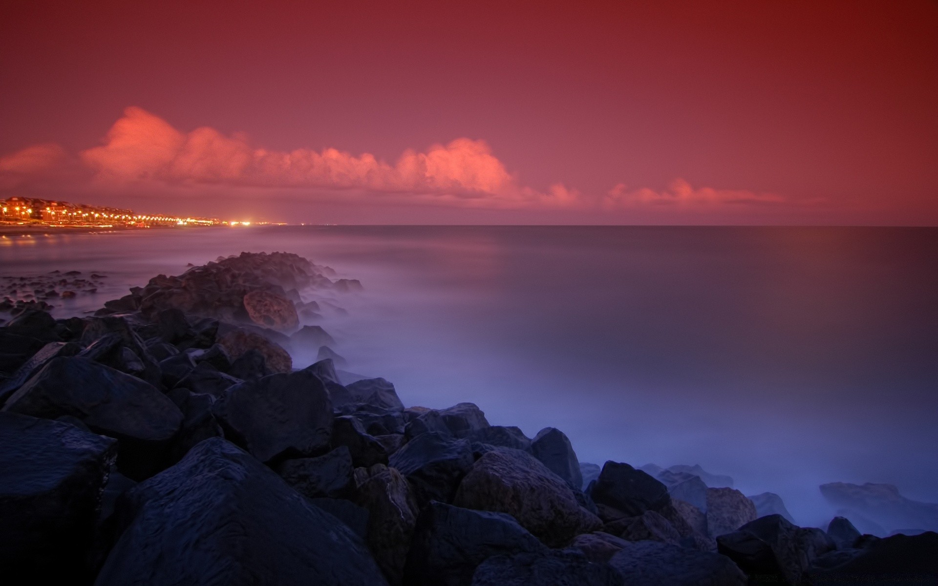 Kamienny Brzeg morza o świcie