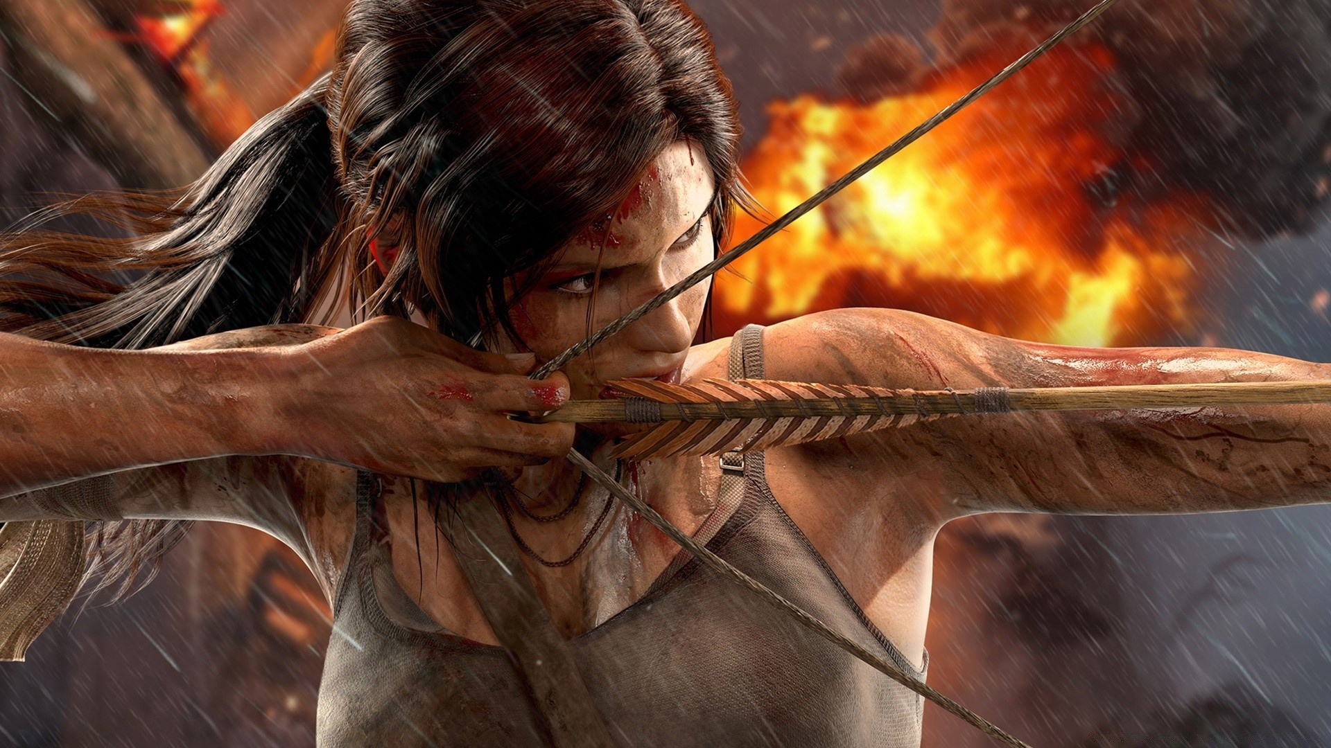Lara Croft w ognisku w jaskini