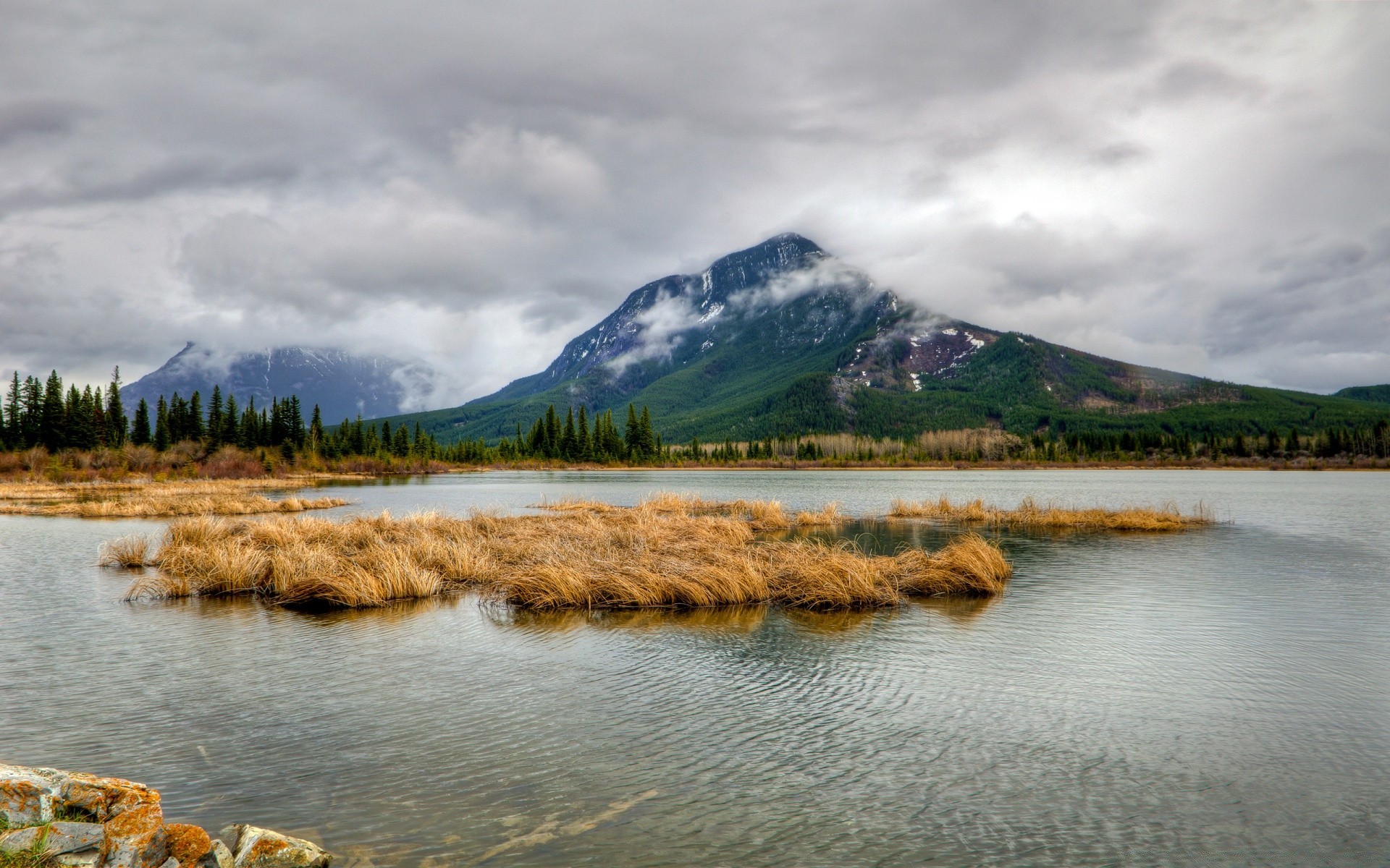 Chmury na niebie. Odbicie nieba w jeziorze. Piękny krajobraz