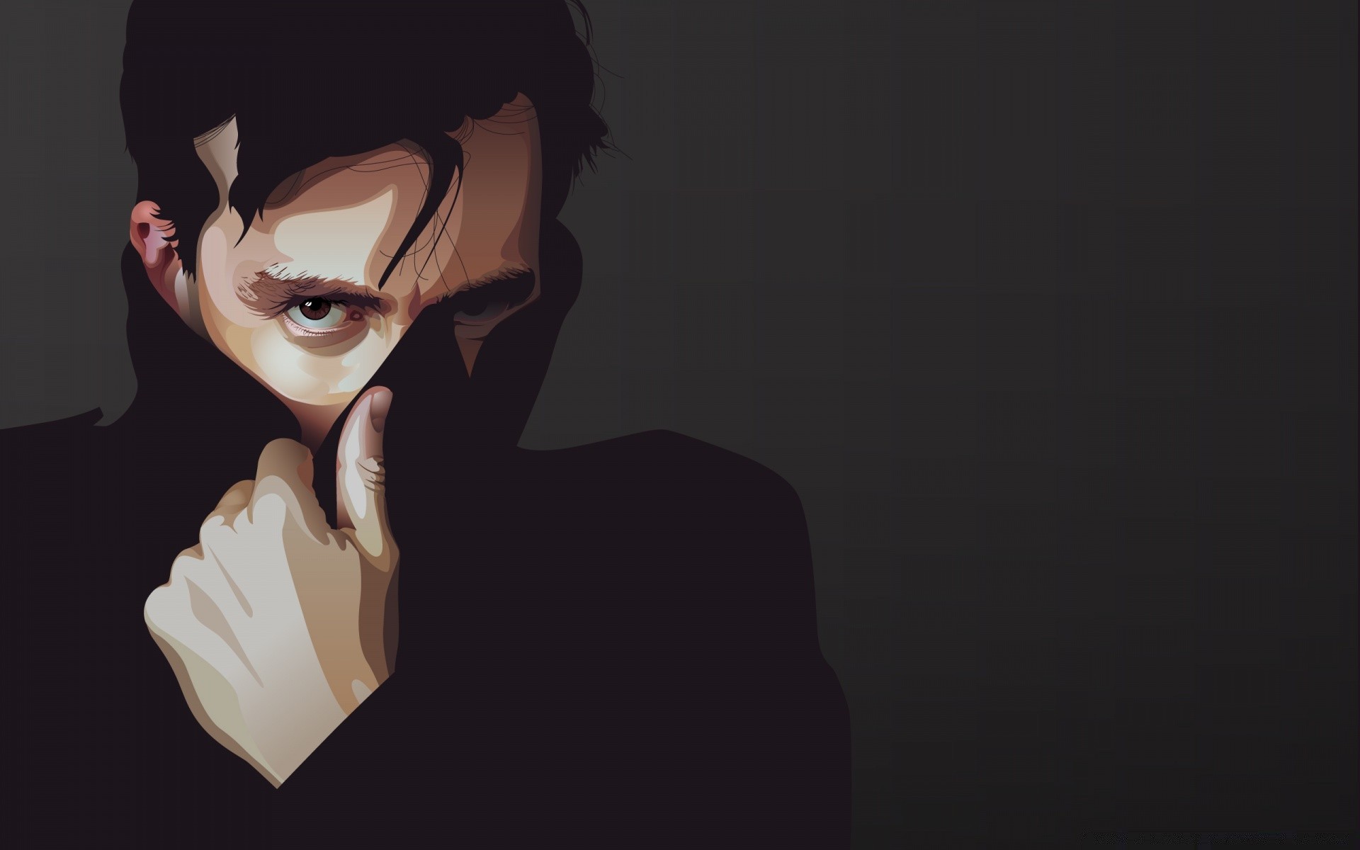 Dziewczyna w niebieskiej sukience na beżowym tle