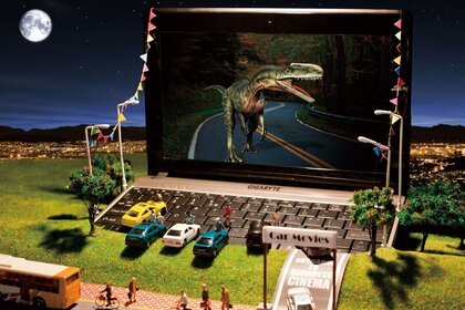 Dinozaur na ekranie kina ulicznego