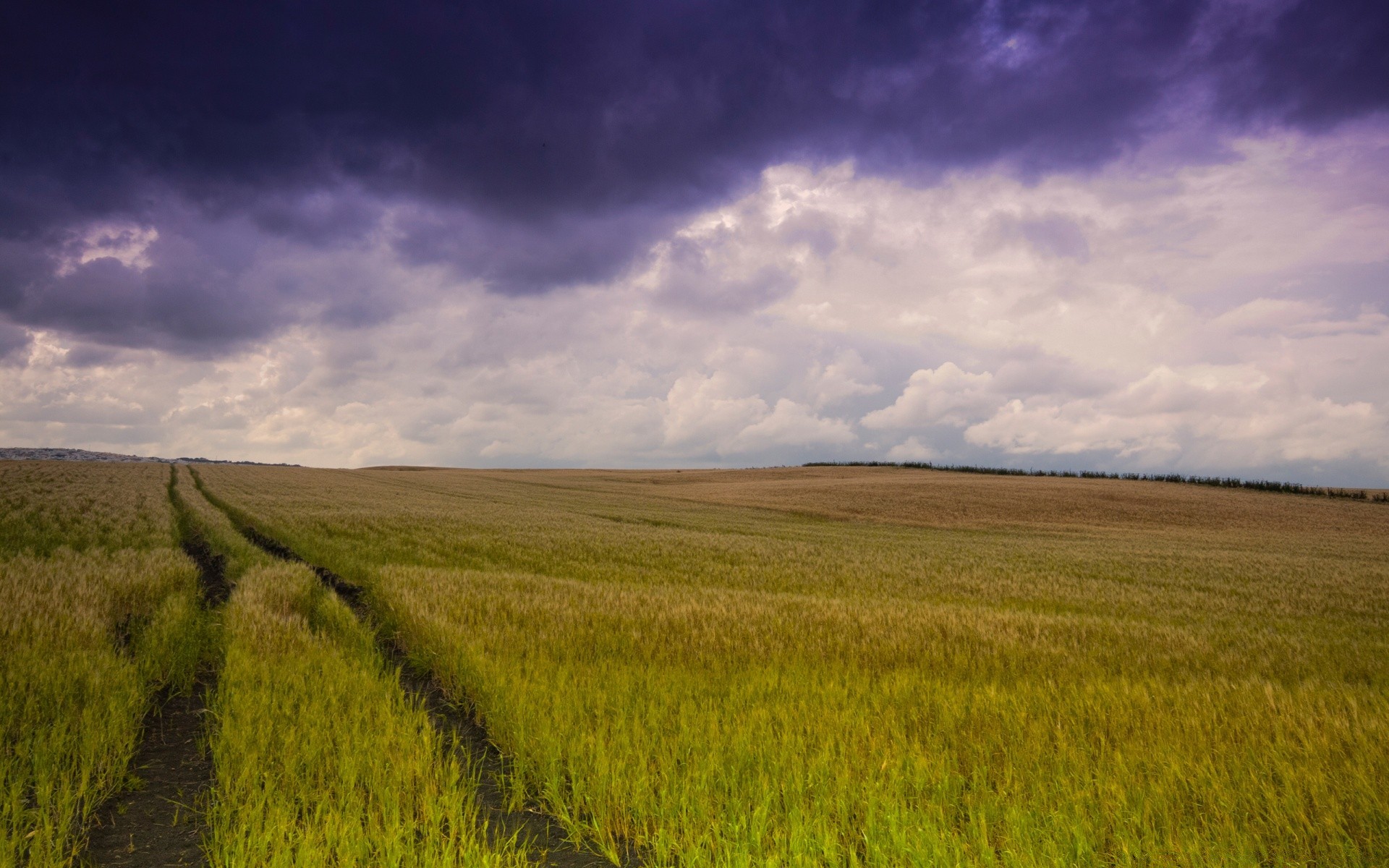Bele słomy na pola uprawne z błękitne niebo pochmurno