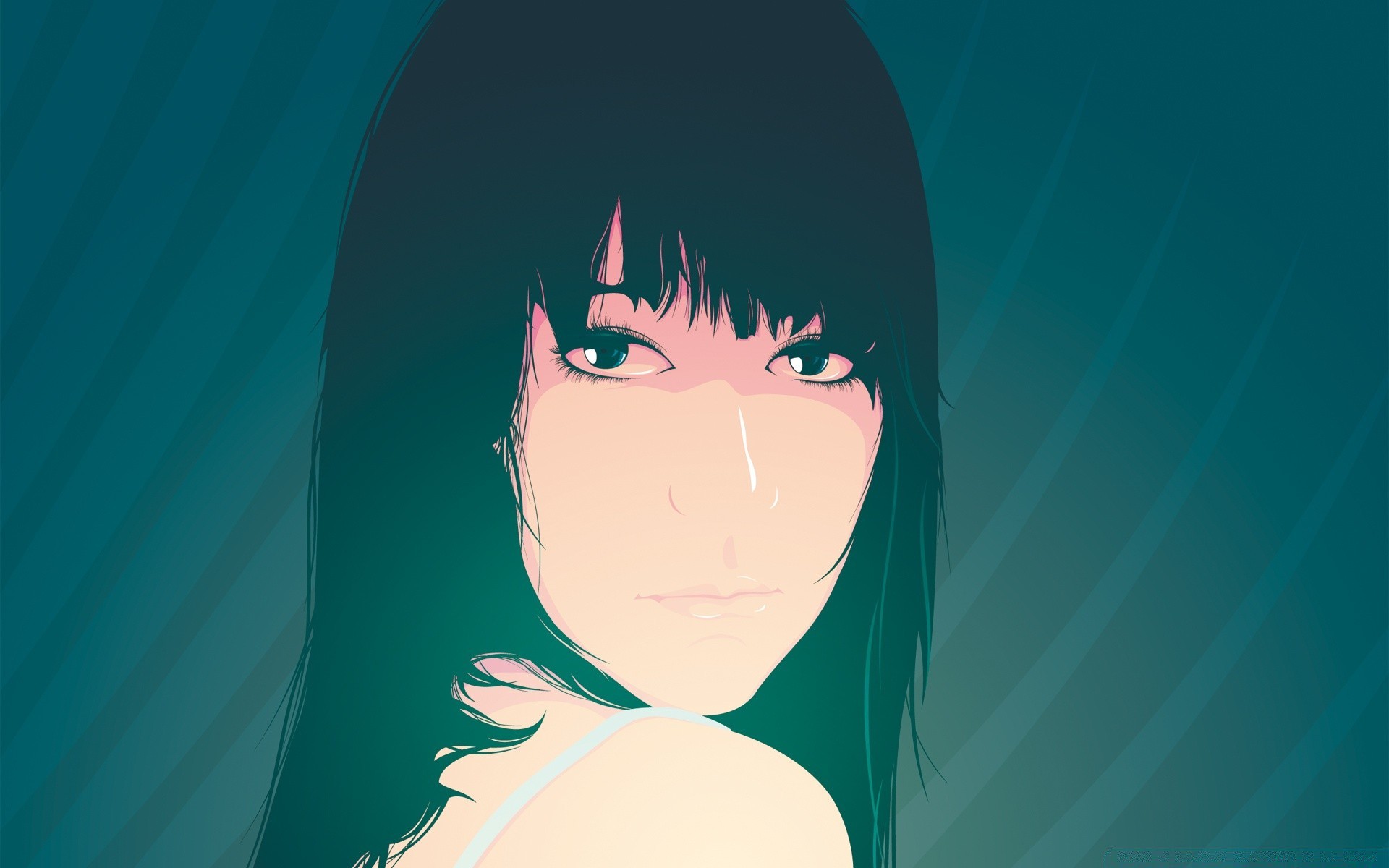Ciemnowłosa kobieta patrzy zza ramienia grafika wektorowaCiemnowłosa kobieta patrzy zza ramienia grafika wektorowa
