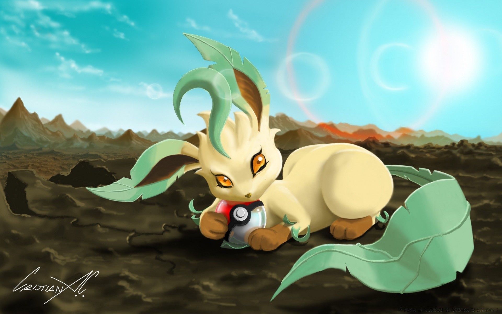 Ilustracja Pokemona na skałach z czystym niebem