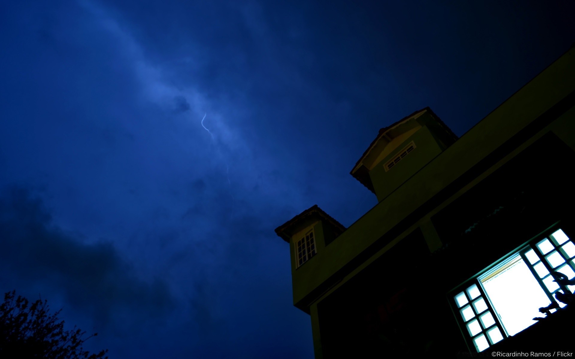 Ponury dom z płonącym oknem