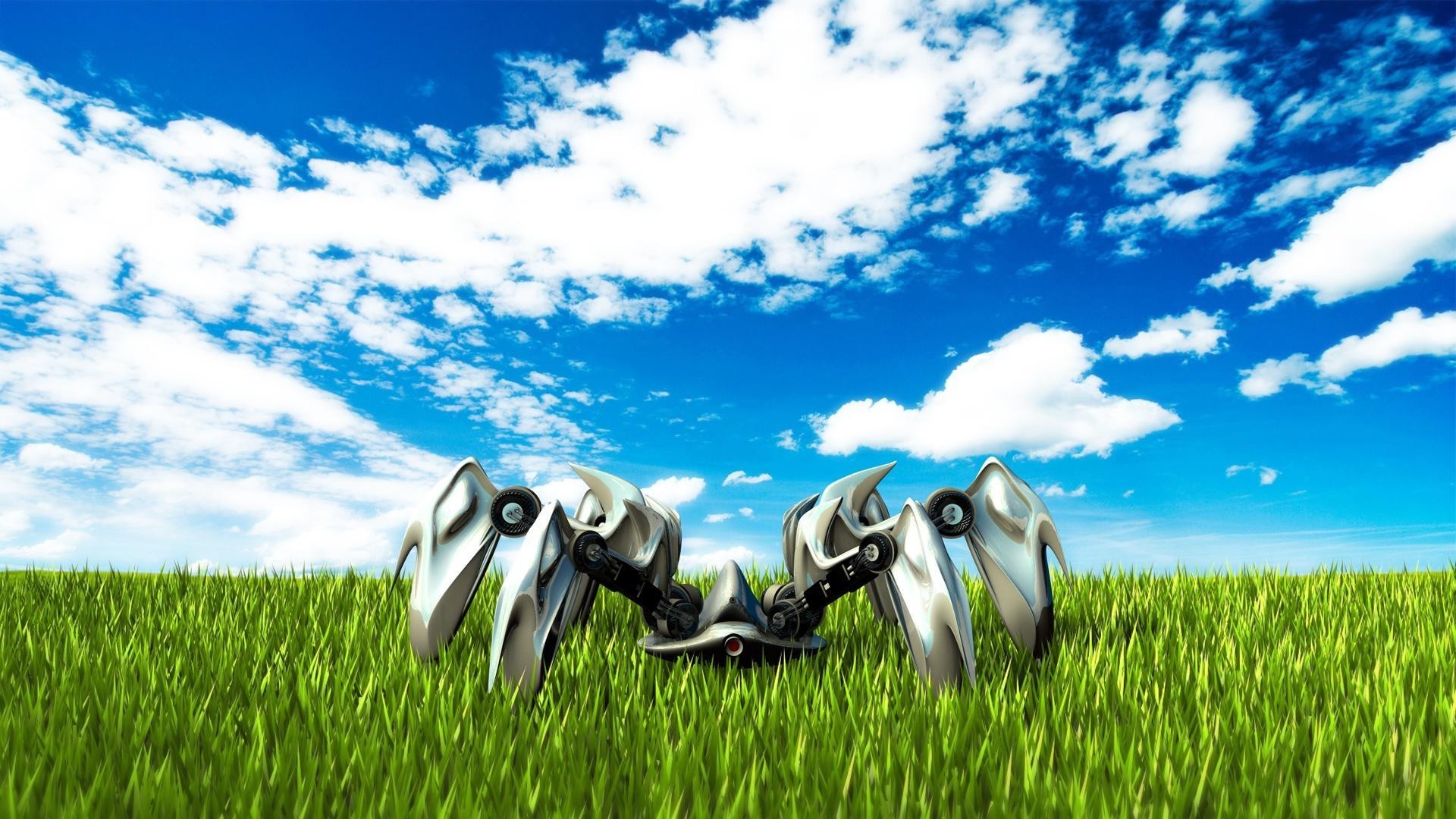 Krajobraz trawy na tle błękitnego, pochmurnego nieba