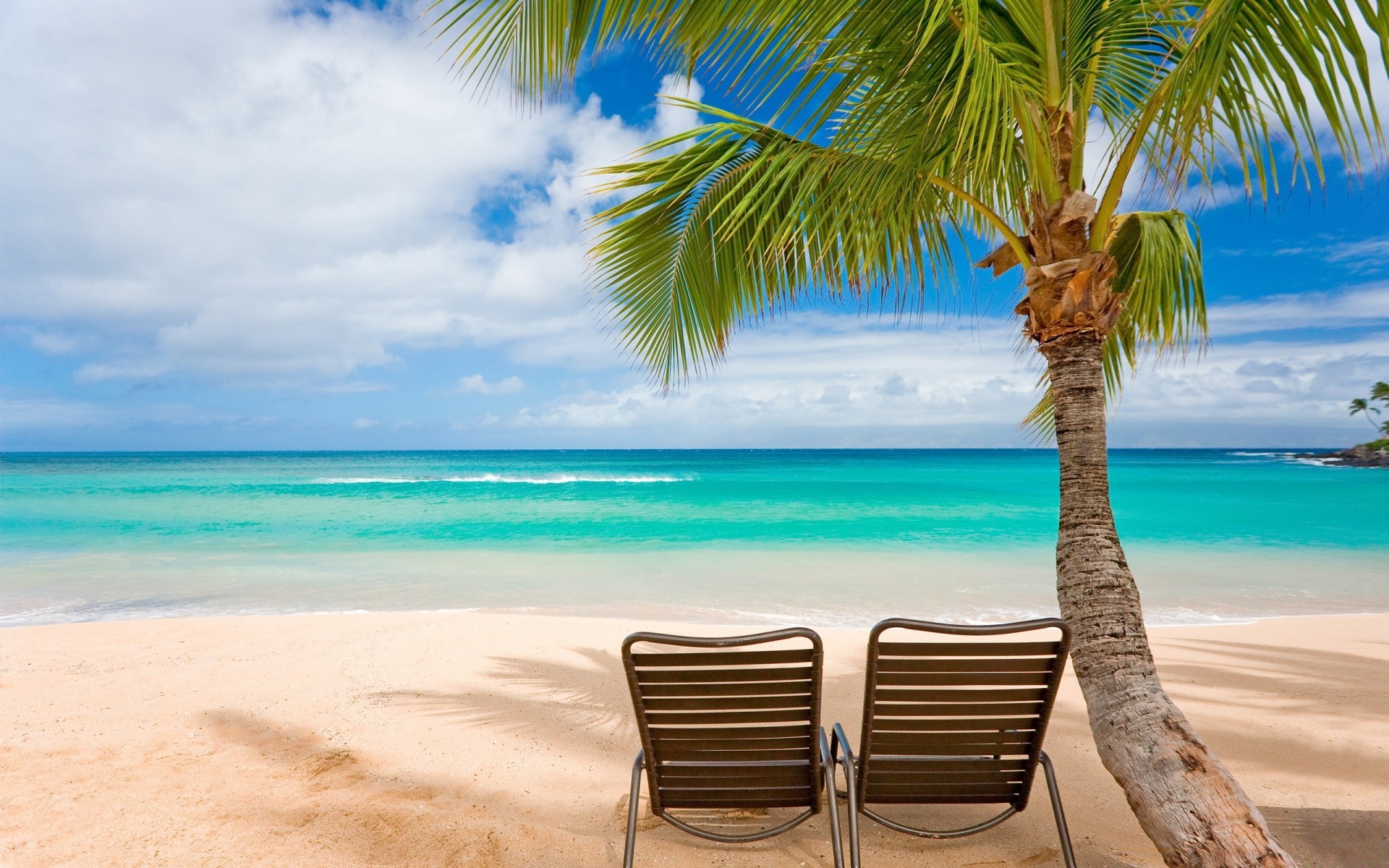 Palmy, Zachód słońca, biały piasek i morze w delikatnych kolorach
