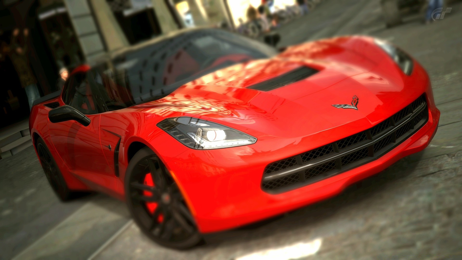 Sportowy błyszczący samochód na ulicy w pobliżu małego budynku