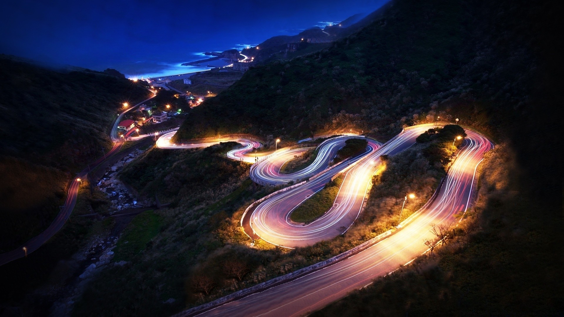 Miasto nad brzegiem z drogą naziemną
