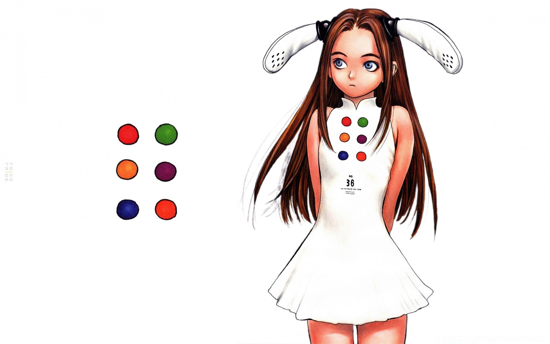 Anime. dziewczyna w białej sukni z białymi długimi uszamiAnime. Dziewczyna w białej sukni z białymi długimi uszami
